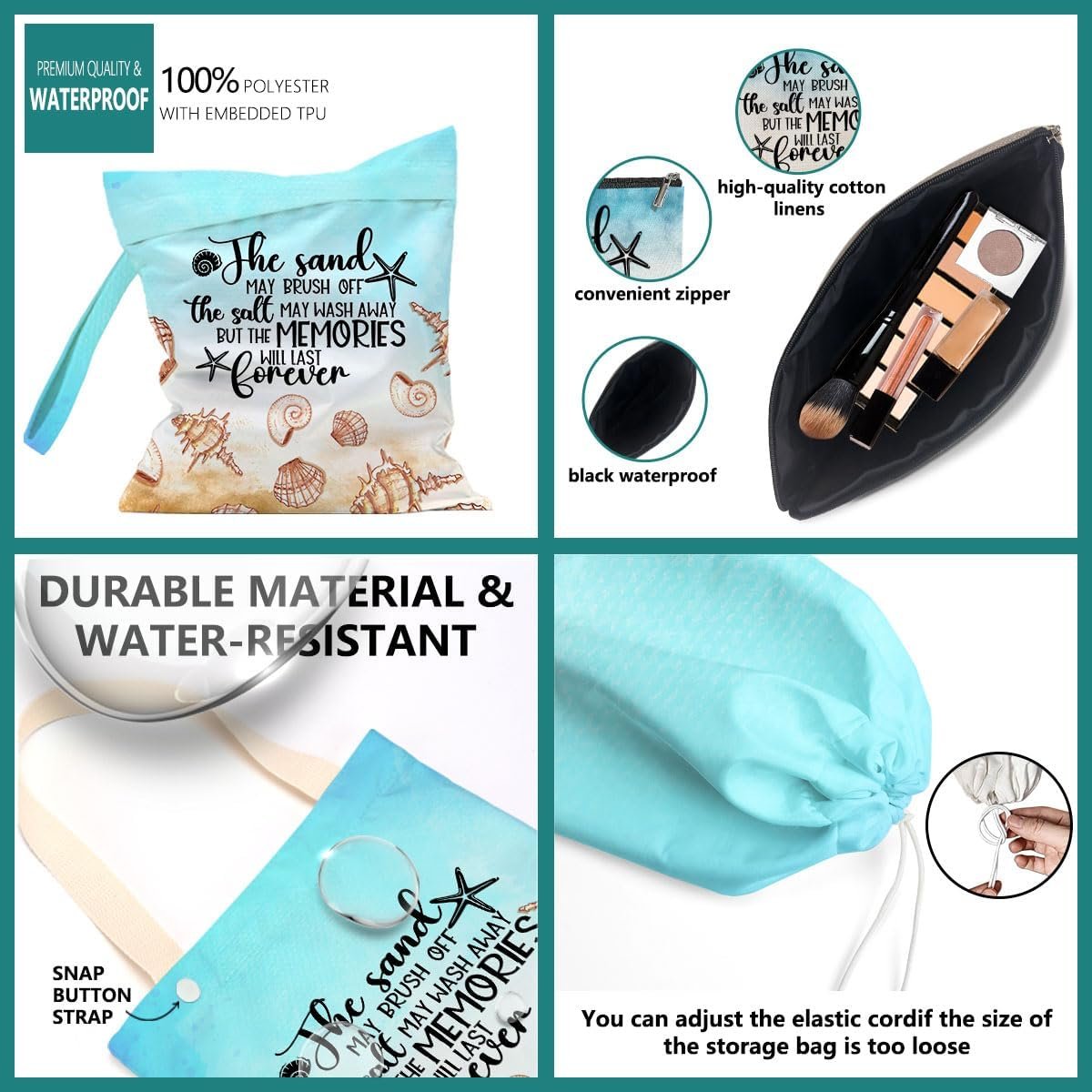 【Beach Gifts Set】 The cute beach gifts for women include: 1 cosmetic bag + 1 canvas tote bag + 1 wet bag + 1 car trash bag + 1 plastic bag holder. The funny beach set bags can meet summer or other seasonal travel needs, whether at home, outdoor, office, or beach travel, etc. Great beach vacation essentials,beach accessories, beach essentials, beach stuff, supplies, beach must haves for Birthday Graduation Mothers Day Nurse Week Boss Day housewarming farewell Christmas Teacher Appreciation.