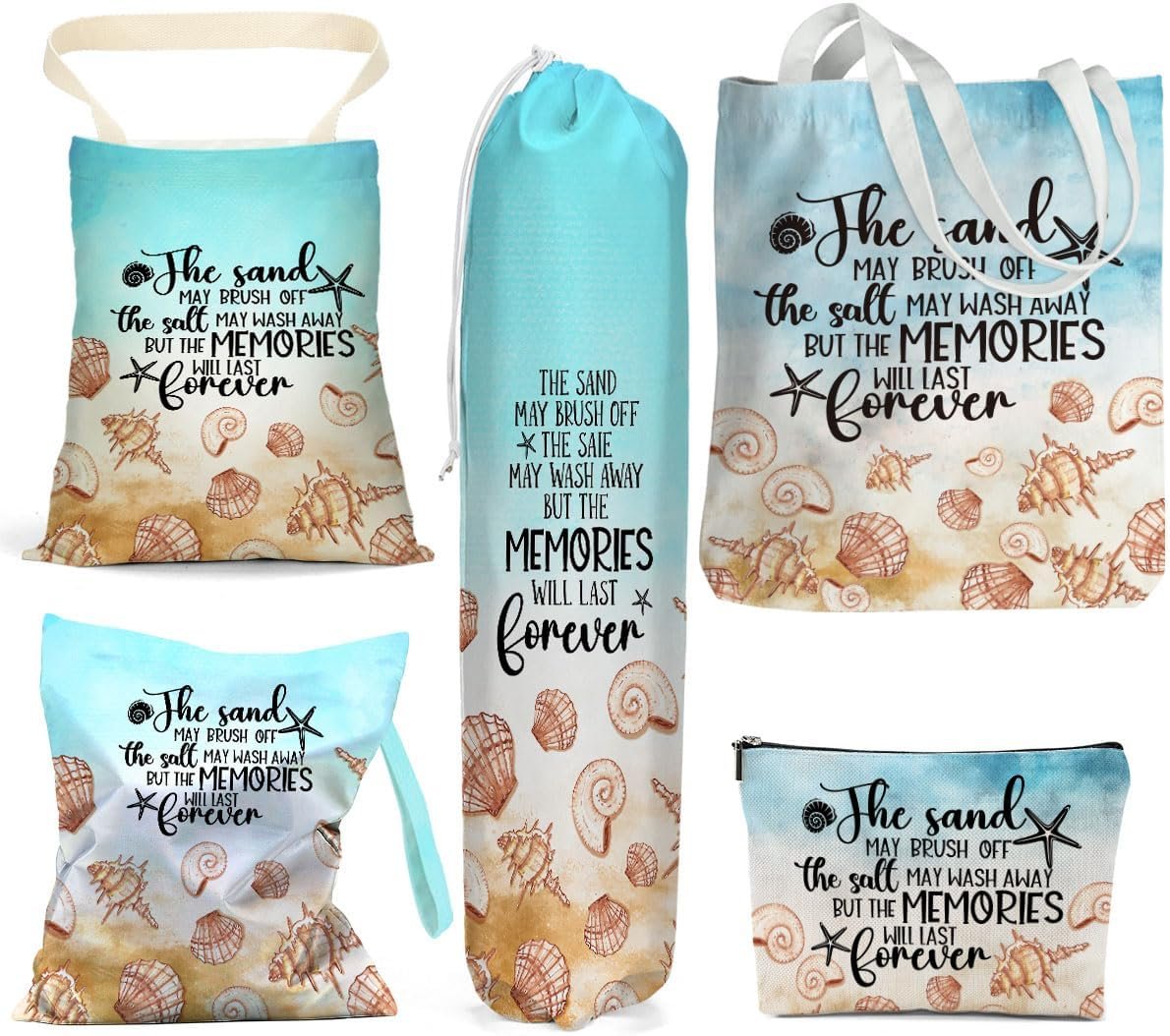 Funny Beach Gifts for Women, Beach Vacation Essentials, 5 pcs Wet Bag Tote Cosmetic Bags Car Trash Plastic Bag Holder Set, Birthday Christmas Graduation Summer Travel Vacation Ocean Girls Trip Gifts