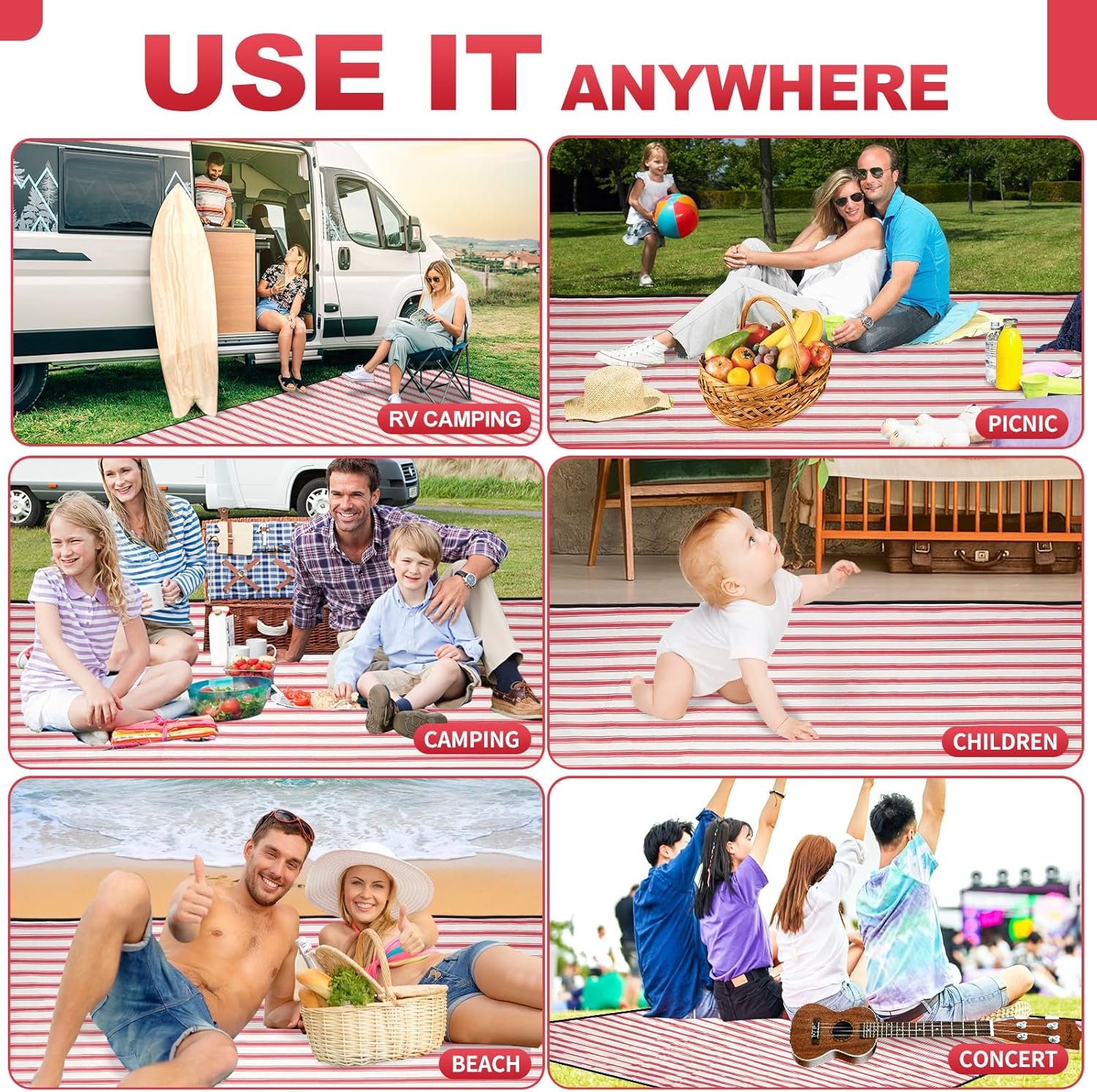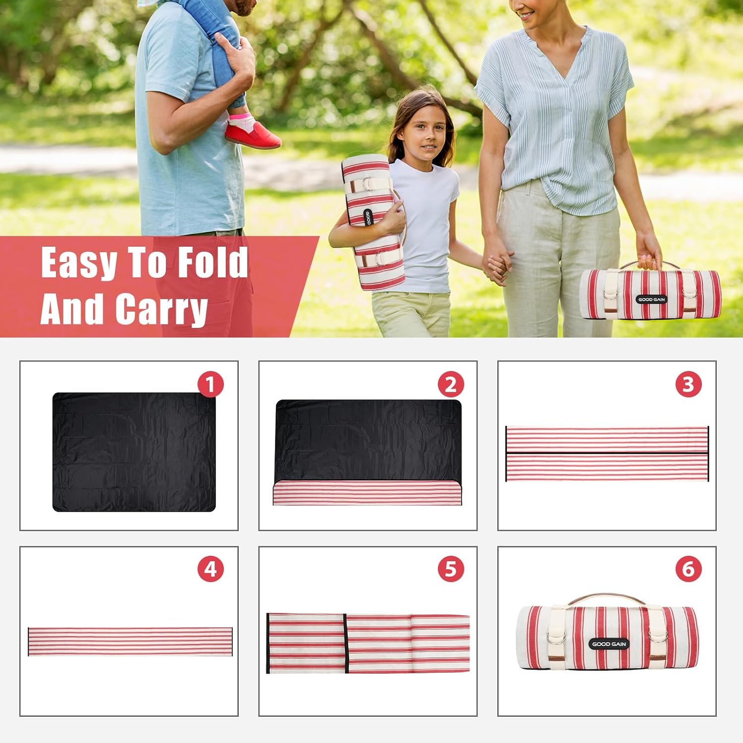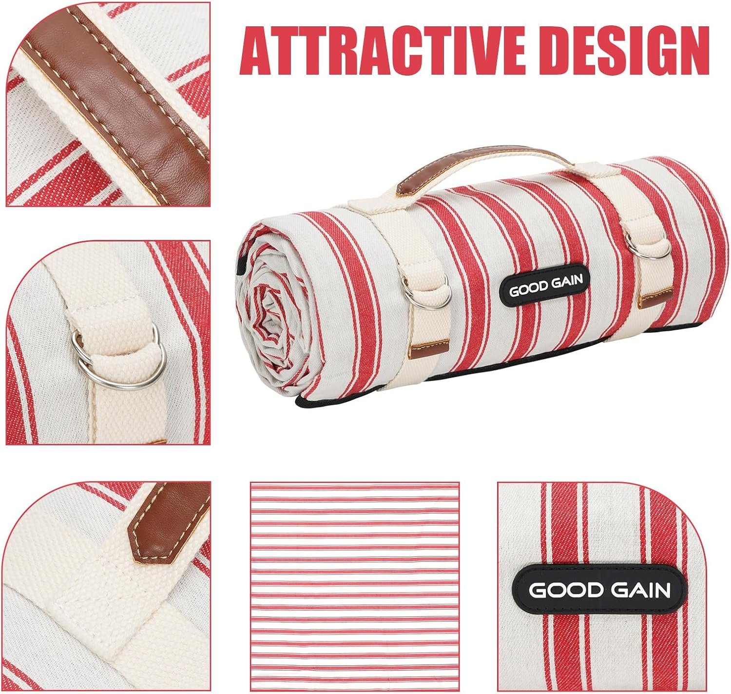 G GOOD GAIN Picnic Blankets Waterproof – Extra Large Outdoor Blanket Sand Free Foldable with Carry Strap for Beach, Camping, Park Grass, Hiking, Travel, Concerts, Indoor(Apple)