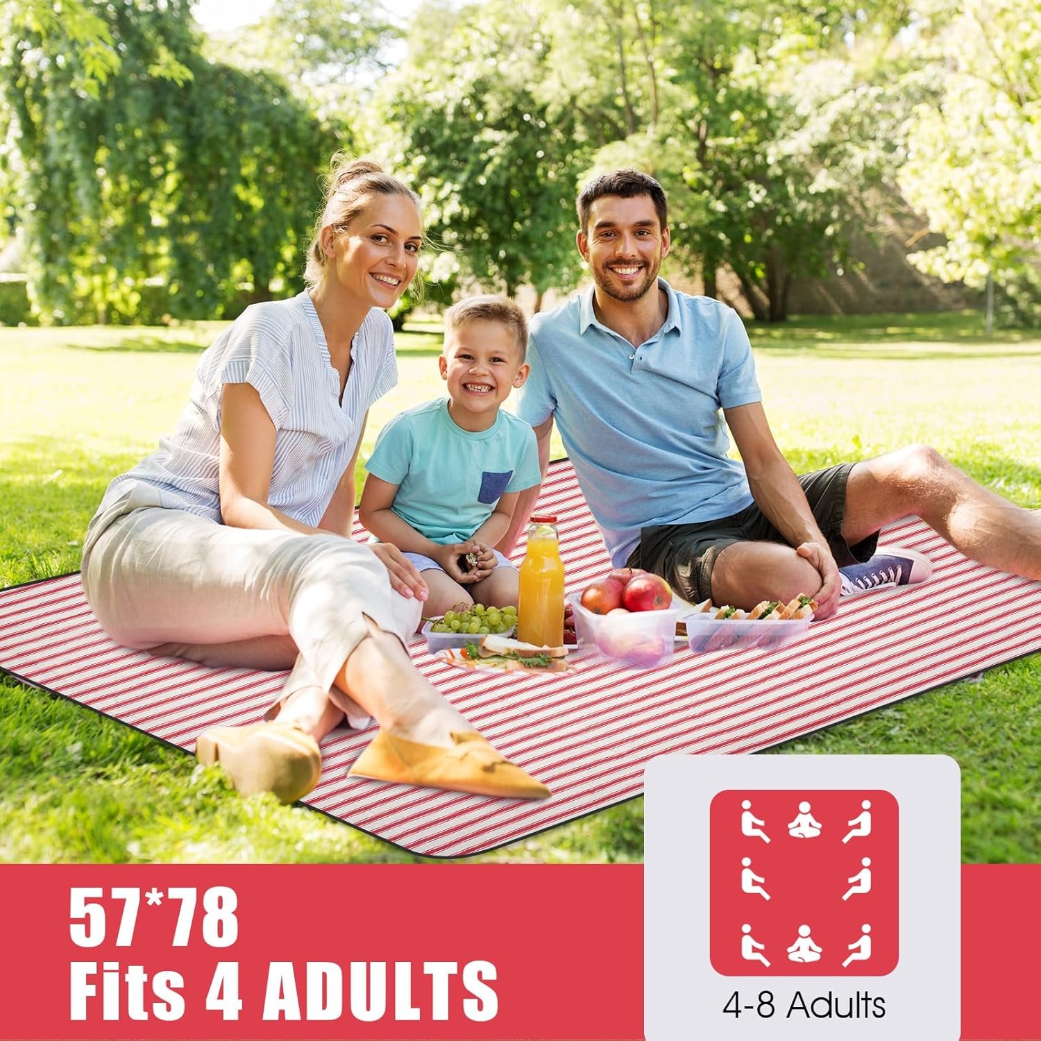 Waterproof Backing Material- Prevents picnic rug from getting wet on damp lawns or surfaces; provides extra sitting comfort, perfect for family outdoor activities