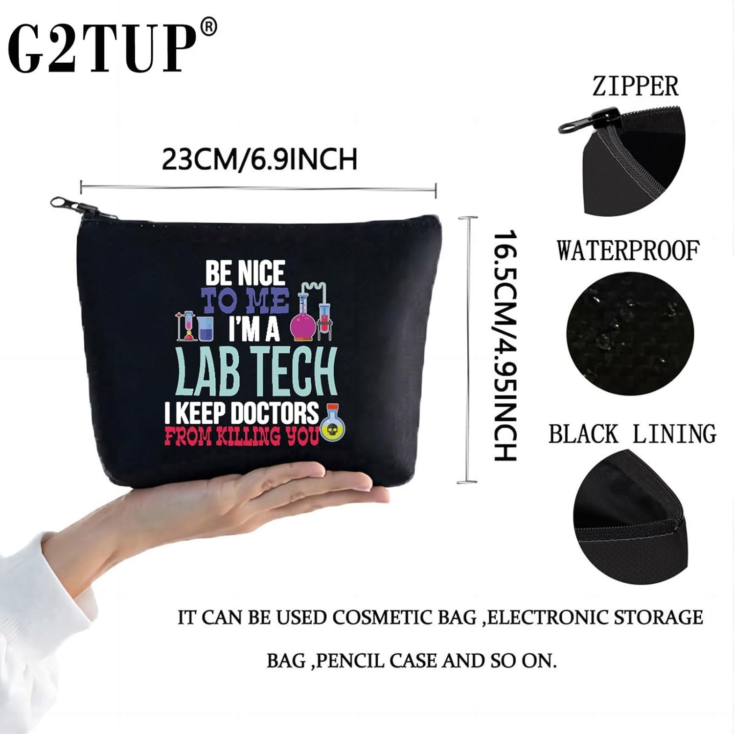 G2TUP Funny Lab Tech Laboratory Technician Week Gift Cosmetic Bag Medical Scientist Lab Technician Travel Organizers (Lab Tech BLACK BAG)