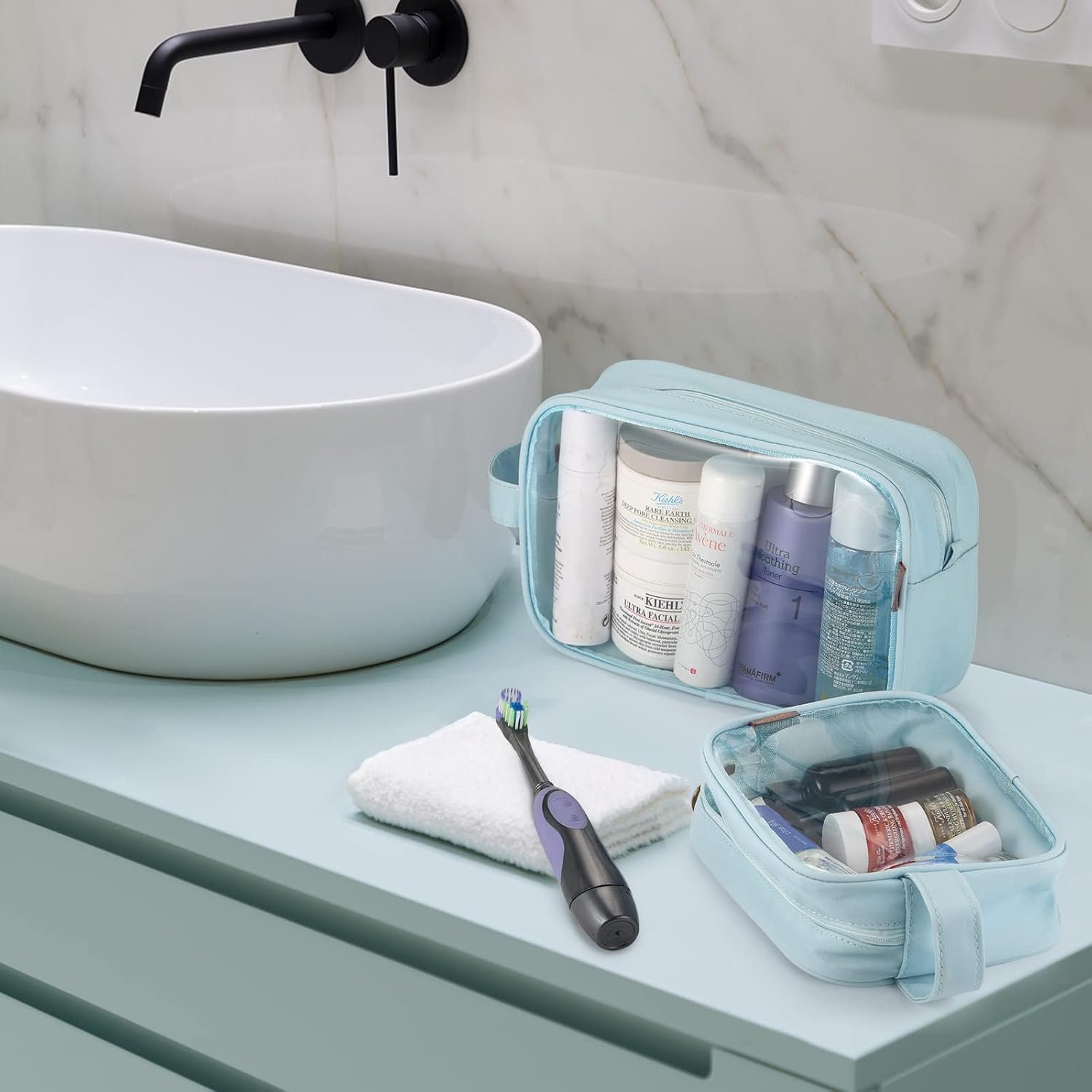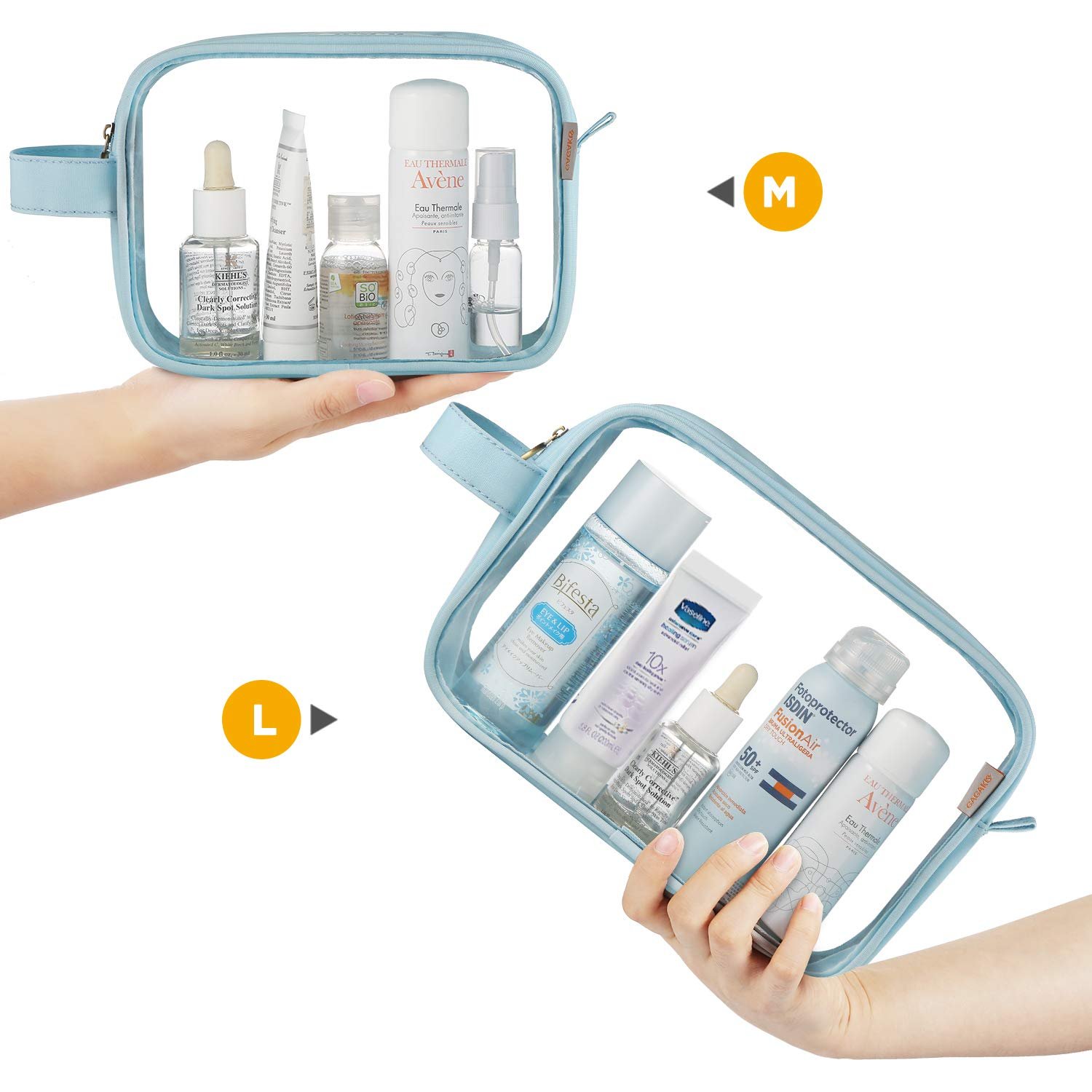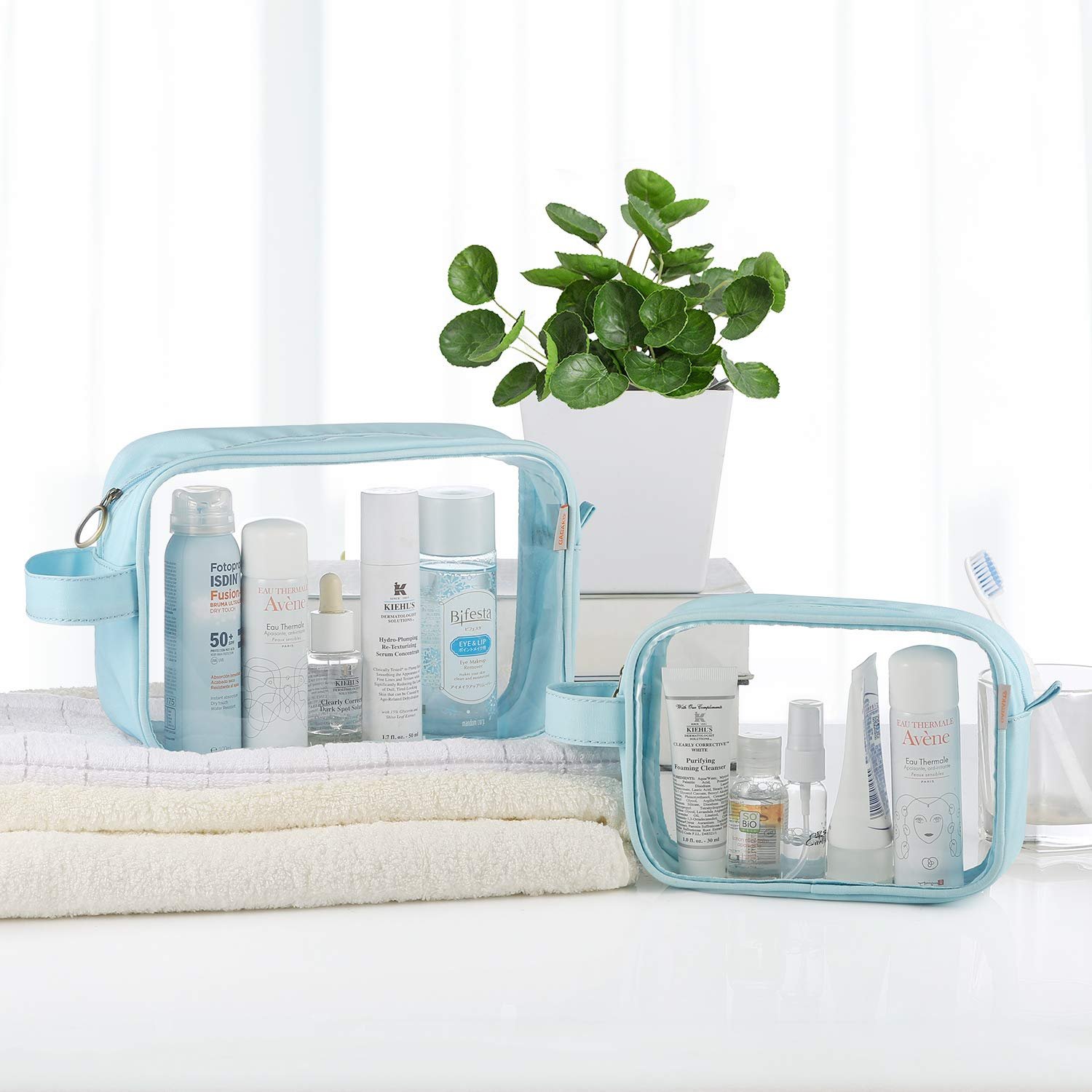 GAGAKU 2pcs Clear Toiletry Bag TSA Approved Travel Toiletry Bags Liquid Bag with Handle Strap, Waterproof Transparent Makeup Cosmetic Bags for Women – Light Blue