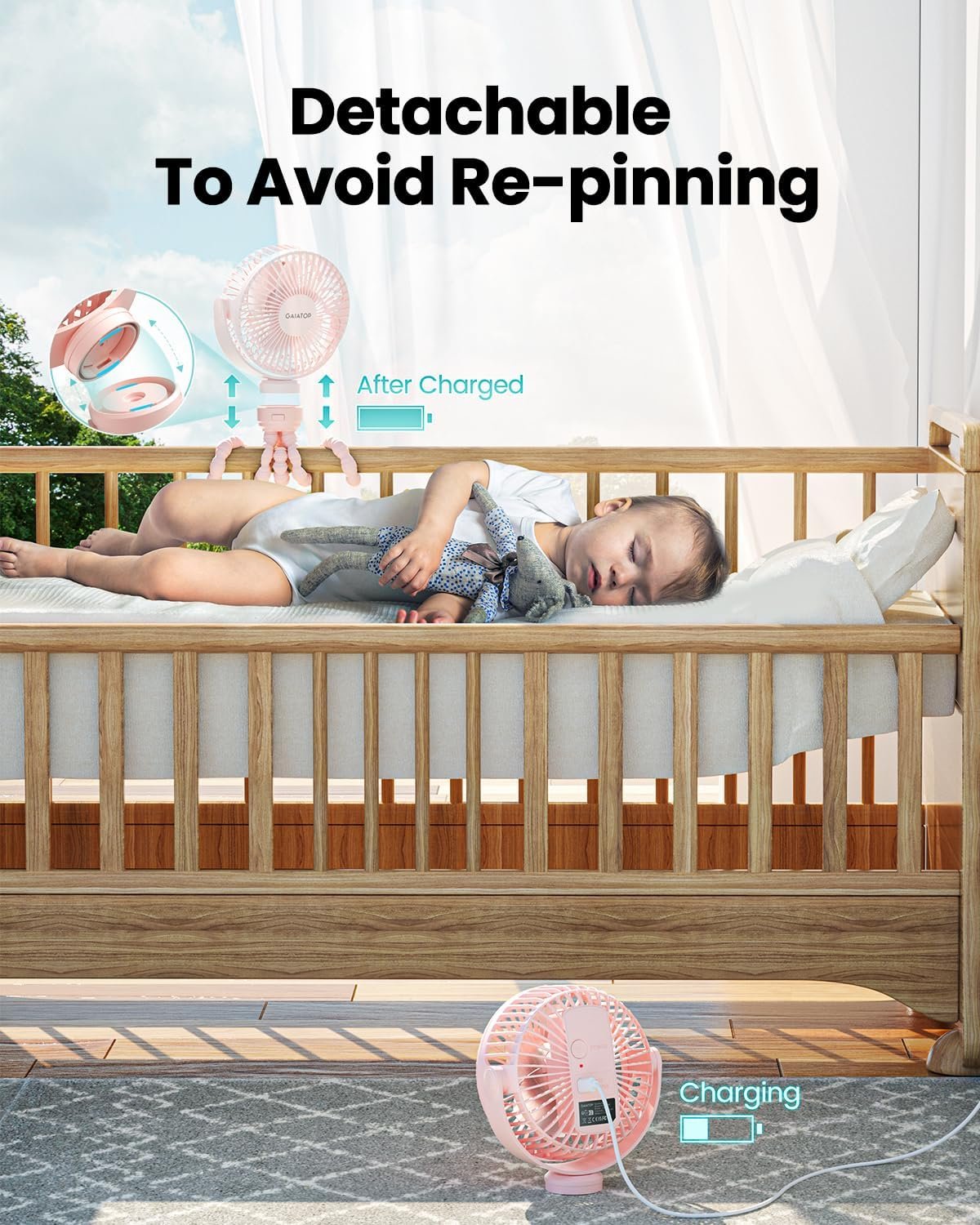 Upgraded Flexible Durable Tripod: Shell made of food-grade silicone, safe for the baby; Optimized the tripod fixing method, which is more durable and not easy to fall off; You can remove the fan head to charge at will, no need to repeated fixation