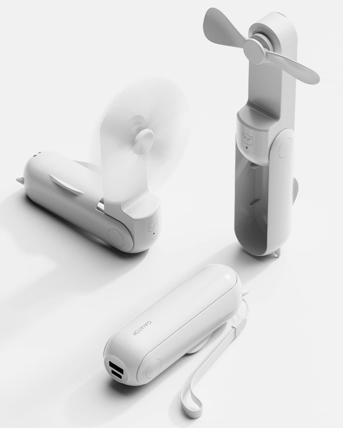 Gaiatop Portable Handheld Fan, Mini Rechargeable Folding Fans with Power Bank USB Battery Operated, Small Pocket Design for Eyelash Girls Women Travel Outdoor White