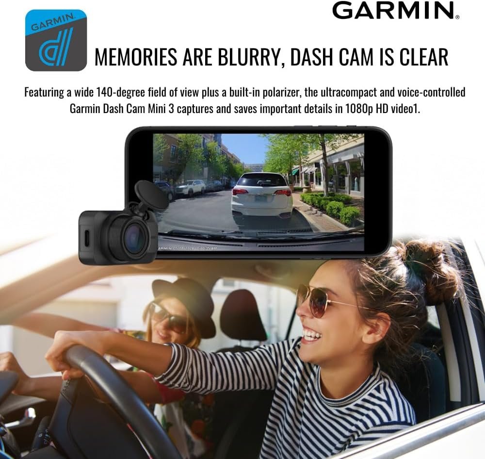 - Garmin Dash Cam Mini 3 Ultra-Compact 1080p Camera with 140-Degree Field of View (Black)