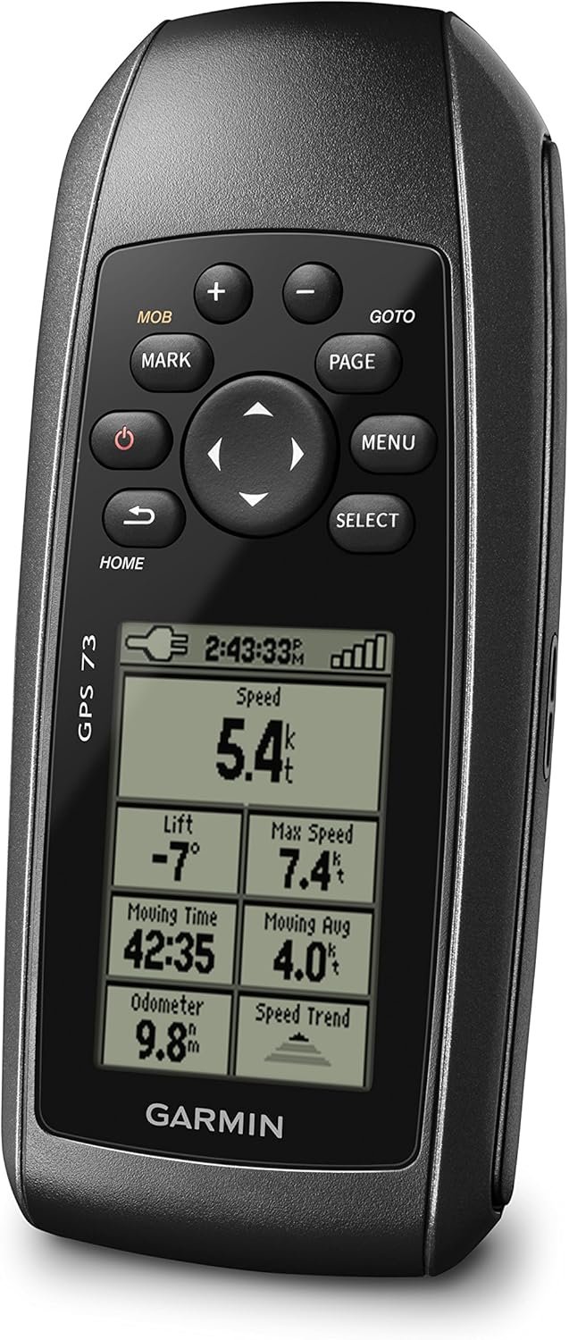 Easy-to-use handheld navigator with high-sensitivity GPS receiver marks and stores 1,000 waypoints and 100 tracks so you can navigate right back to them again. The Sail Assist feature for GPS 73 includes virtual starting line, heading line, countdown timers, speed history and tack assist. This is the perfect navigational solution for power boats, sailboats or small watercraft that don’t have a chart plotter. It’s also ideal as an important emergency navigation backup for all vessels. It even floats! Provides sunrise/sunset times, estimated time of arrival, man overboard (MOB), marine alarms and marine data. Screen and keys feature a built-in backlight, making its high-contrast display easy to read in all lighting conditions. Includes NMEA 0183 support and over 18 hours of battery life with 2 AA batteries.