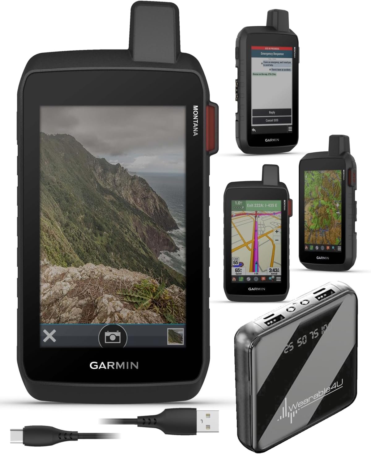 Garmin Montana 760i, Rugged GPS Handheld Navigator 5” Touchscreen w/Built-in inReach Technology for SOS and 2-way Texts in Remote Areas, 8MP Camera, Satellite Imagery & Maps w/ Wearable4U PBank Bundle