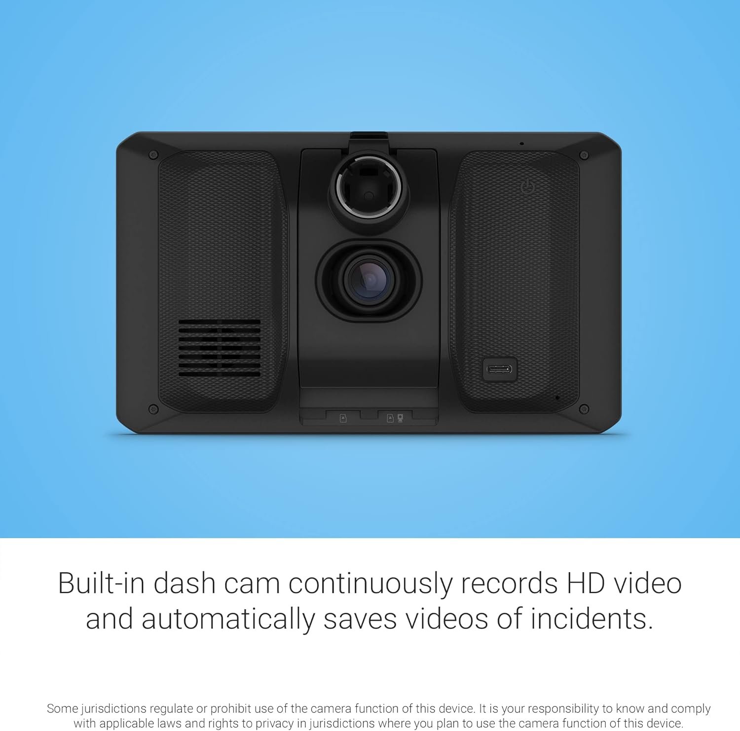 Built-in dash cam (Some jurisdictions regulate or prohibit use of the camera function of this device. It is your responsibility to know and comply with applicable laws and rights to privacy in jurisdictions where you plan to use the camera function of this device) serves as your eyewitness on the road; saved video clips automatically upload to the secure online Vault to easily view and share via the Garmin Drive app on your compatible smartphone