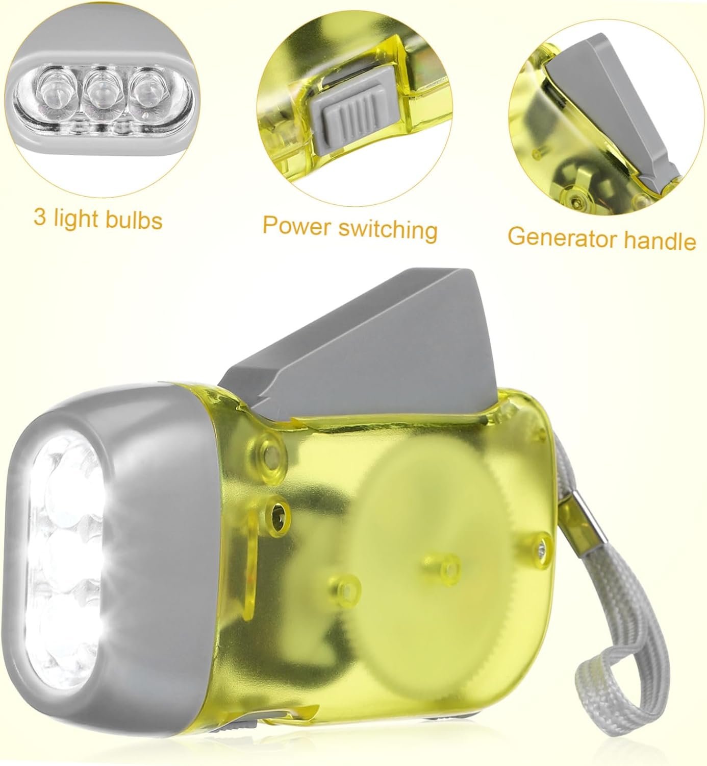 Handcrank flashlight–this hand crank powered flashlight is to use for camping, emergency or power outages,flashlight hand crank