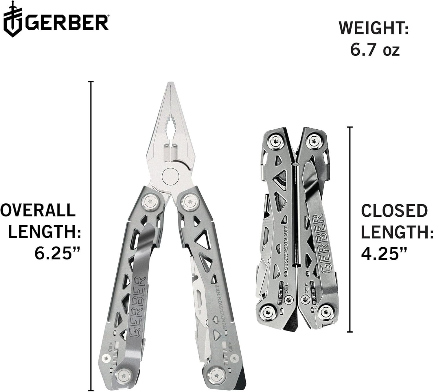 Gerber Gear Suspension-NXT 15-in-1 EDC Multi tool with Pocket Knife, Needle Nose Pliers and Wire Stripper Tools, Gifts for Men, Survival and Camping Gear, Stainless Steel