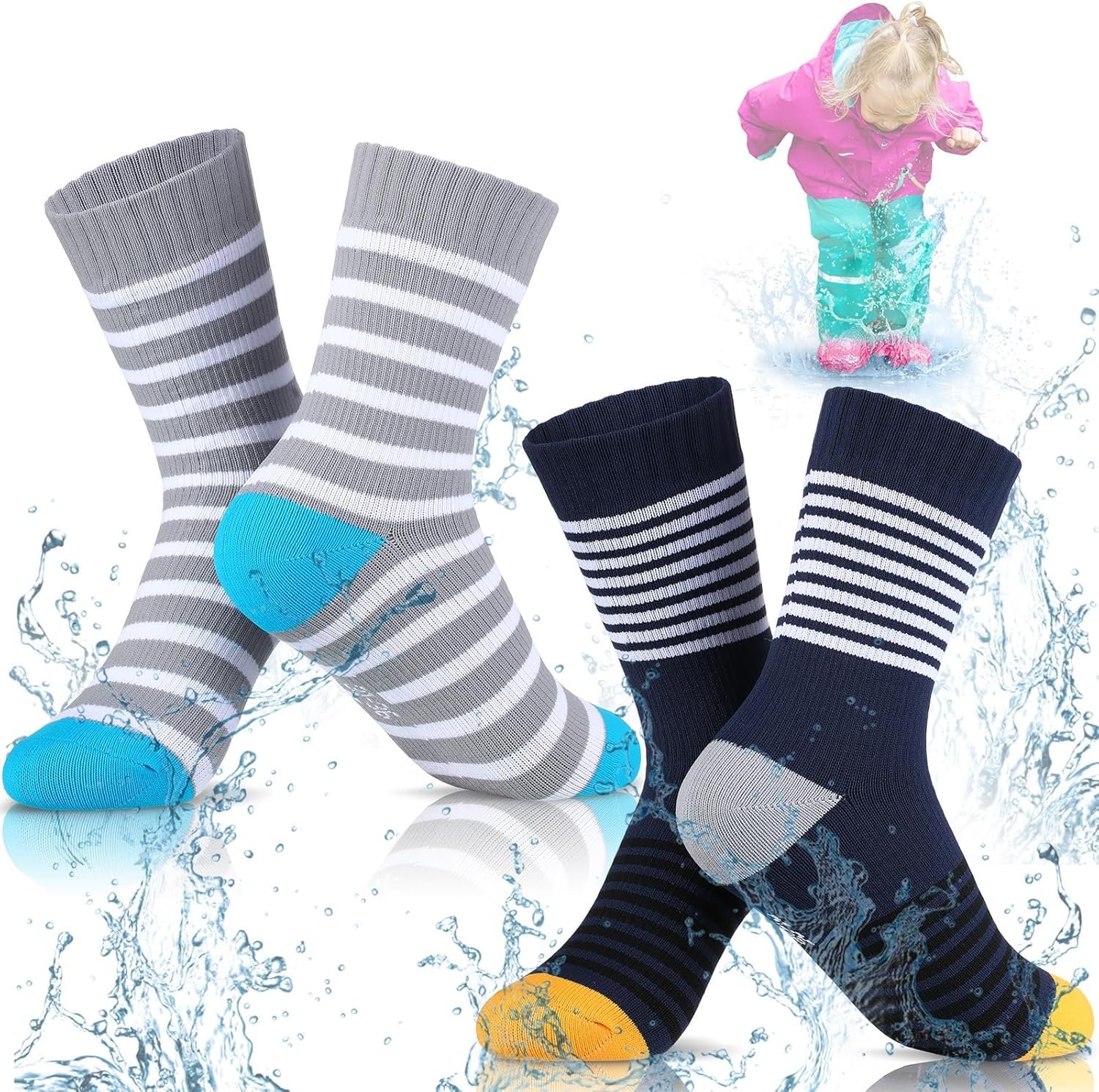 Geyoga 2 Pairs Waterproof Socks for Kids Girls Boys Breathable Skiing Hiking Socks for Travel Camping Wading