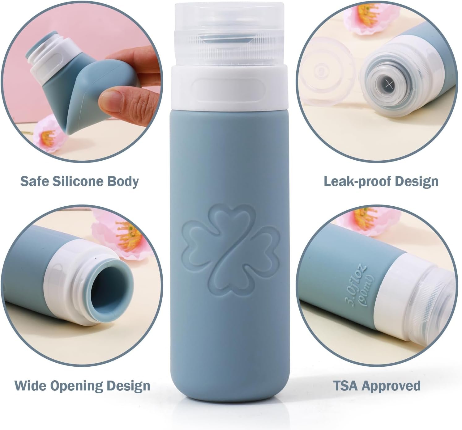 TSA Approved Leak-Proof Travel Toiletries Bottles: Our silicone bottles are designed with a 3-layer leak-proof system and a sturdy flip-top lid to protect your toiletries from spills, leaks, or drips during transport. No more worries about your expensive cosmetics leaking during travel.