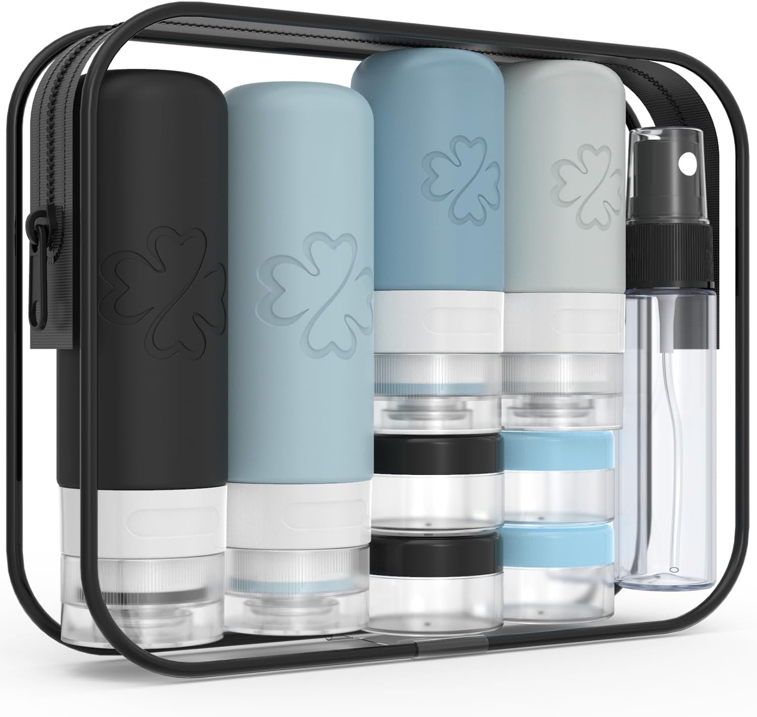 GLAMFIELDS 18 Pack Travel Bottles for Toiletries, Silicone TSA Approved Travel Size Containers for Toiletries Leak Proof Refillable Travel Essentials for Shampoo Conditioner Lotion, Multicolor E