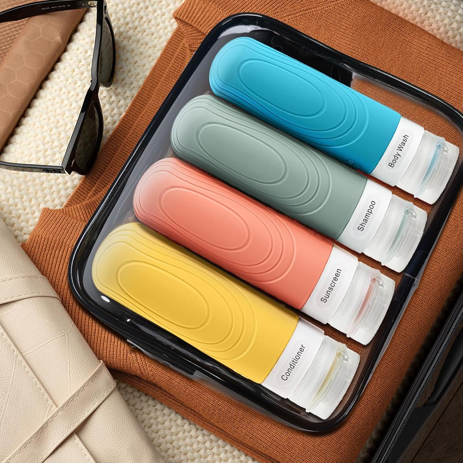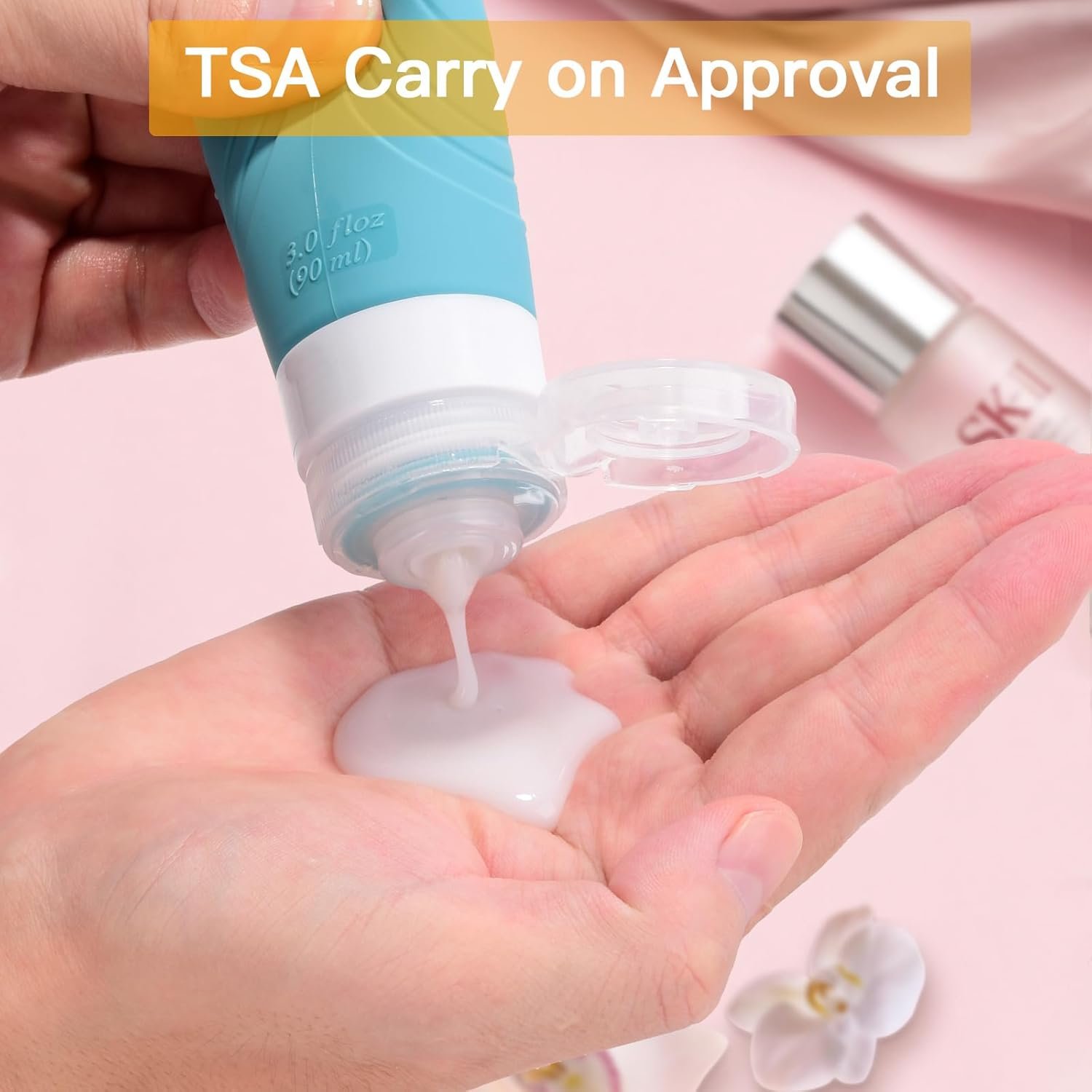 【TSA Approved Portable Travel Bottles】 These 3oz travel size bottles are TSA approved, perfect for carrying shampoo, conditioner, lotion, and all kinds of liquid .Comes with a high-quality transparent wash bag, making your long-distance travels hassle-free.GLAMFIELDS travel size bottles are must have traveling accessories.
