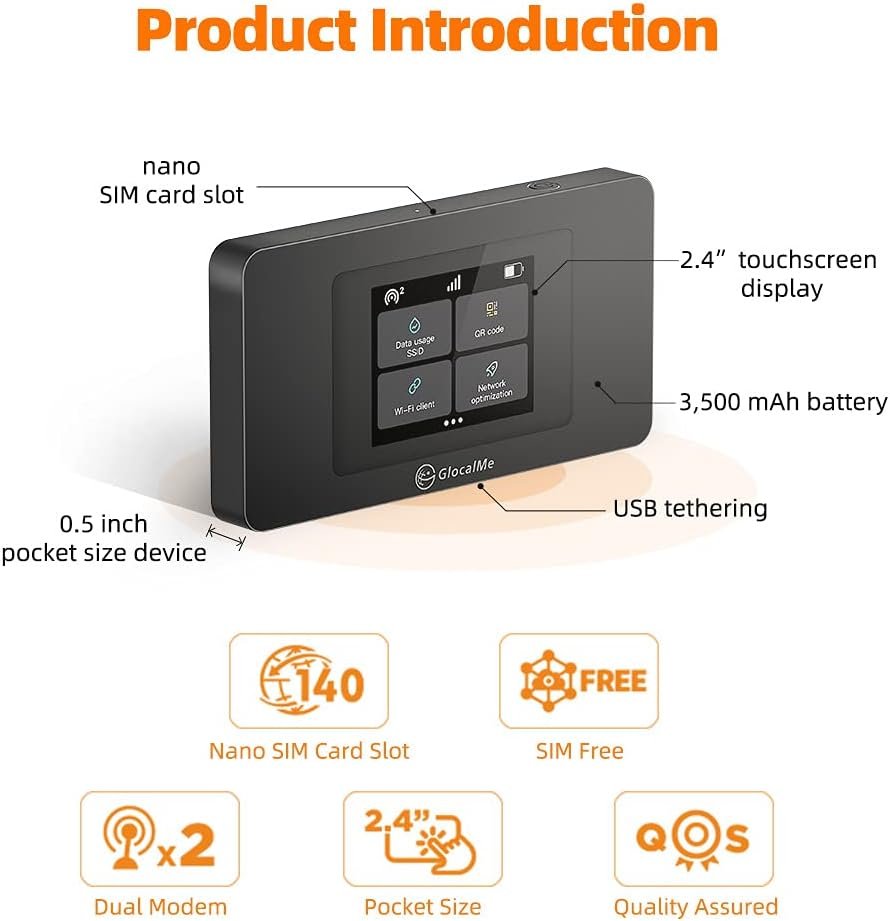 【Unlocked and Global Compatible】Support mainstream frequency bands and works in more than 200 countries around the world across America, Europe, Middle East, Asia, Africa and Oceania; No SIM is needed for Internet connection. More detailed information in the product description below.