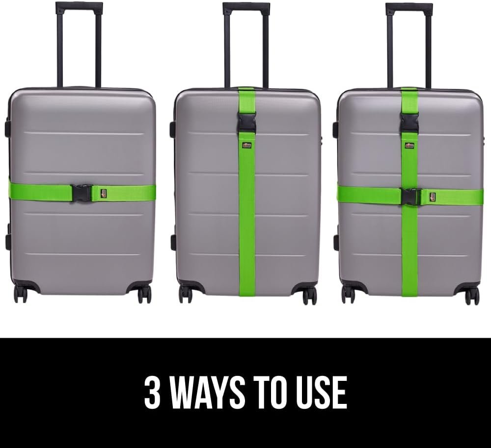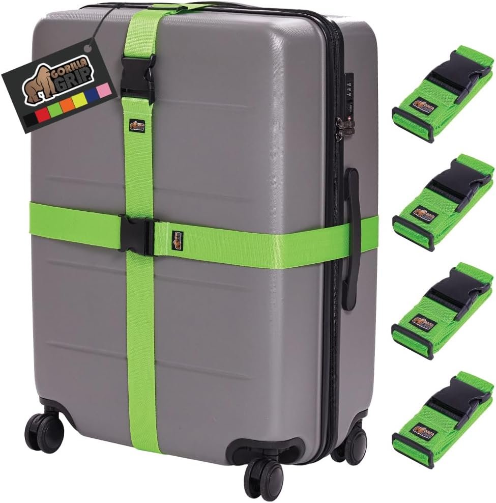 GORILLA GRIP Heavy Duty 4 Pack Adjustable Luggage Straps for Suitcases, Easy to Identify Travel Belt Connector Holds Suitcase Together, Extends Life of Bag, Strap Connects Two Bags, Accessories Green