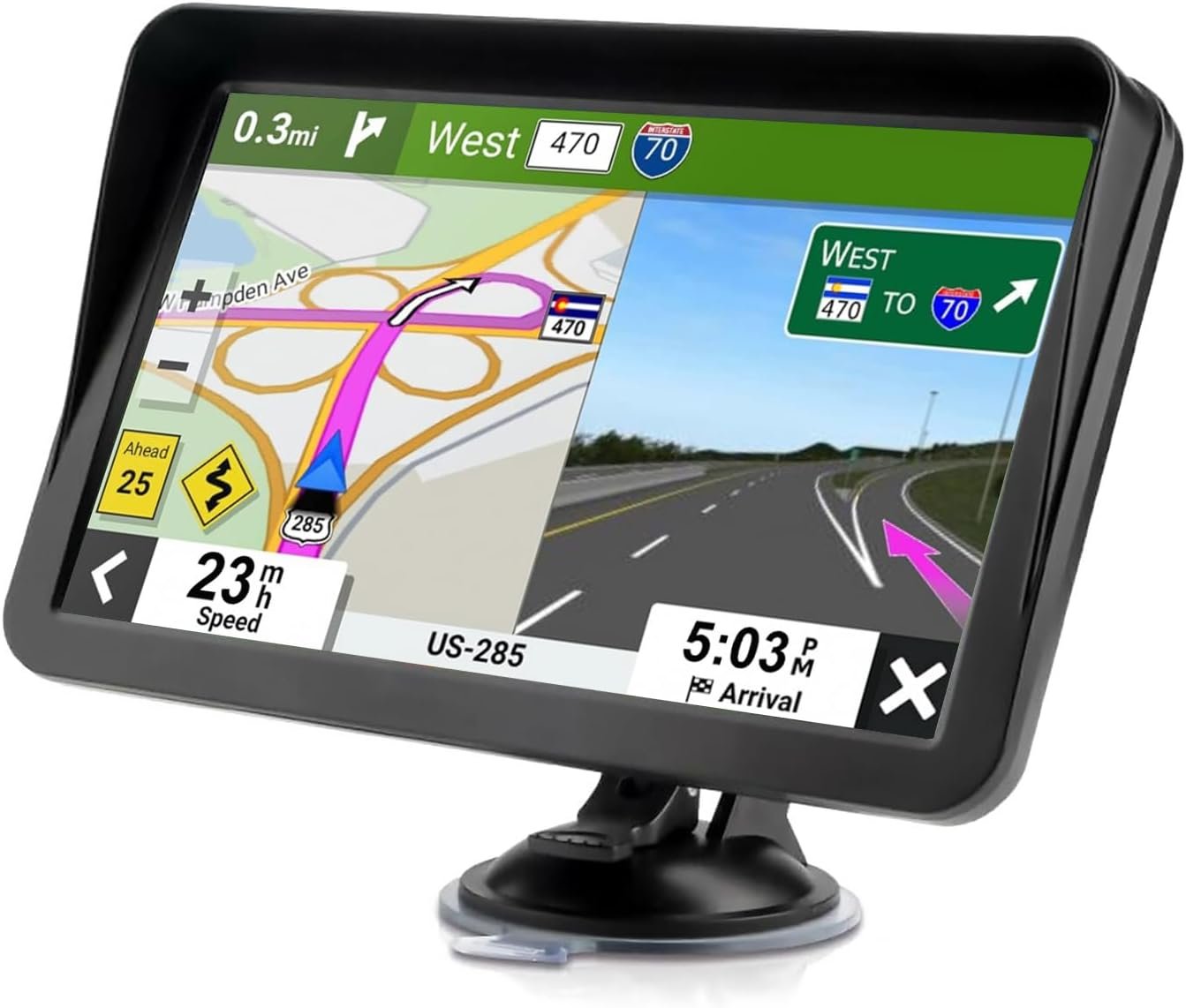 GPS Navigator for Car, Latest 2025 Map, Truck GPS 9 inch Touch Screen, Real Voice Spoken Turn-by-Turn Direction Reminding, Speed and Red Light Warning, Vehicle GPS Satellite Navigation System (Black)
