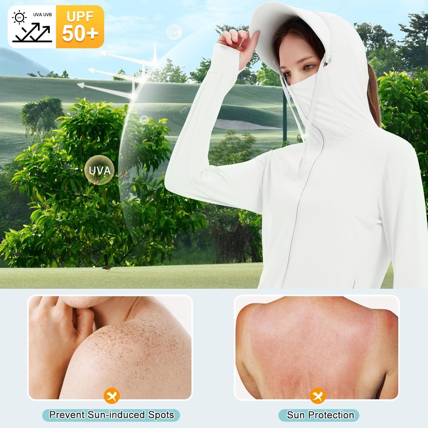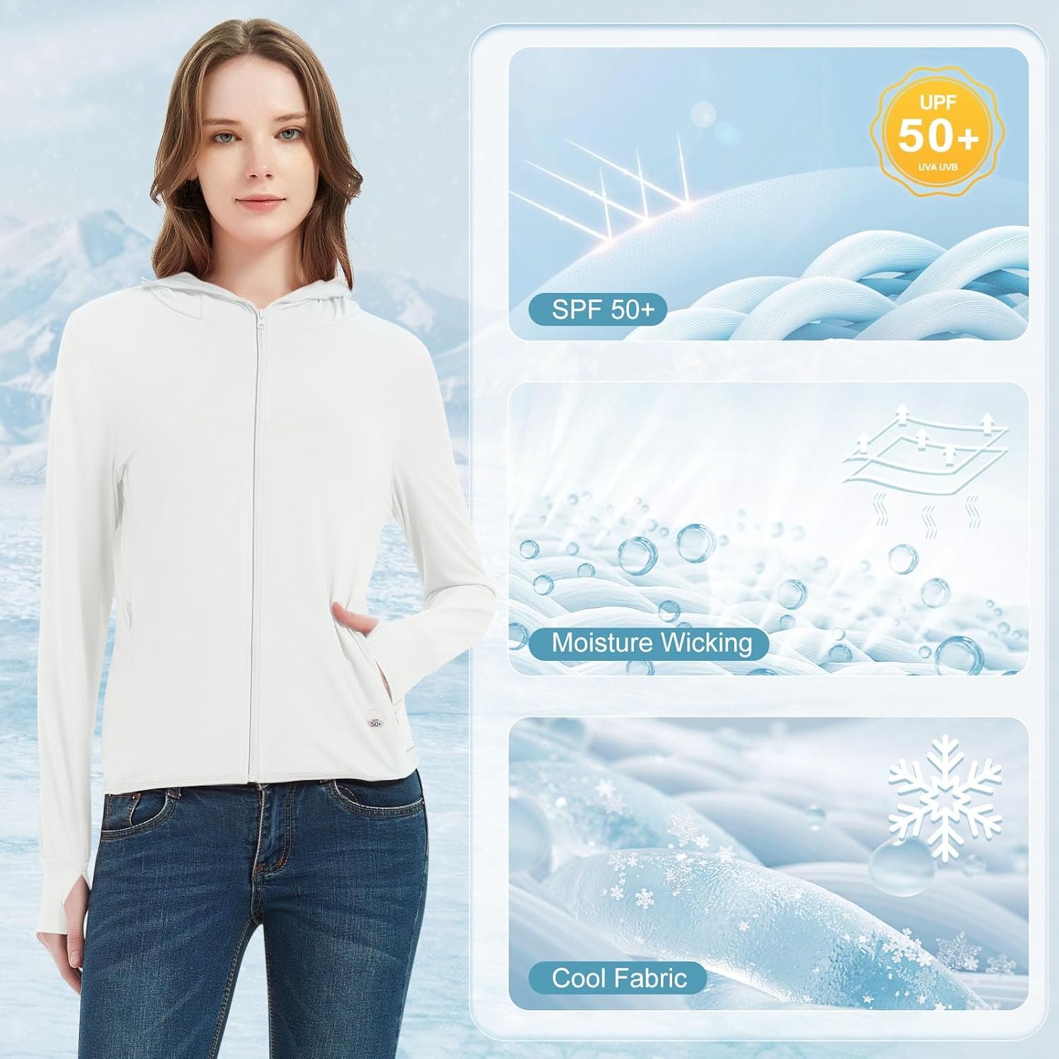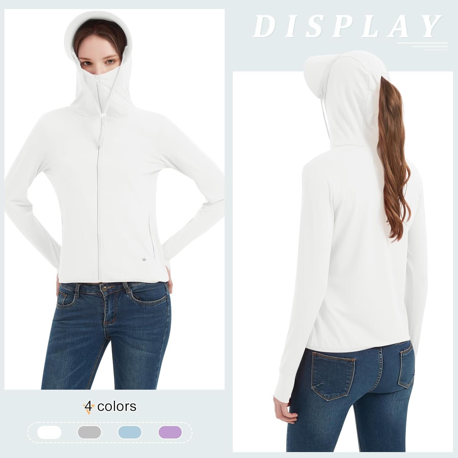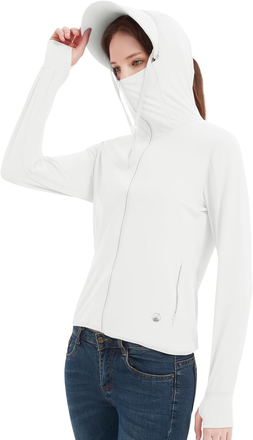 Guooolex Womens UPF 50+ Sun Protection Hoodie Jacket Lightweight Quick Dry Active UV Shirts with Zipper Pockets