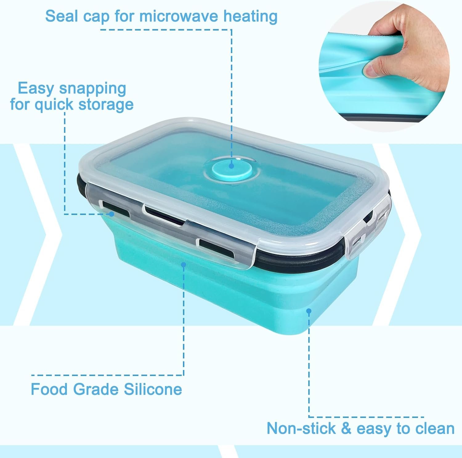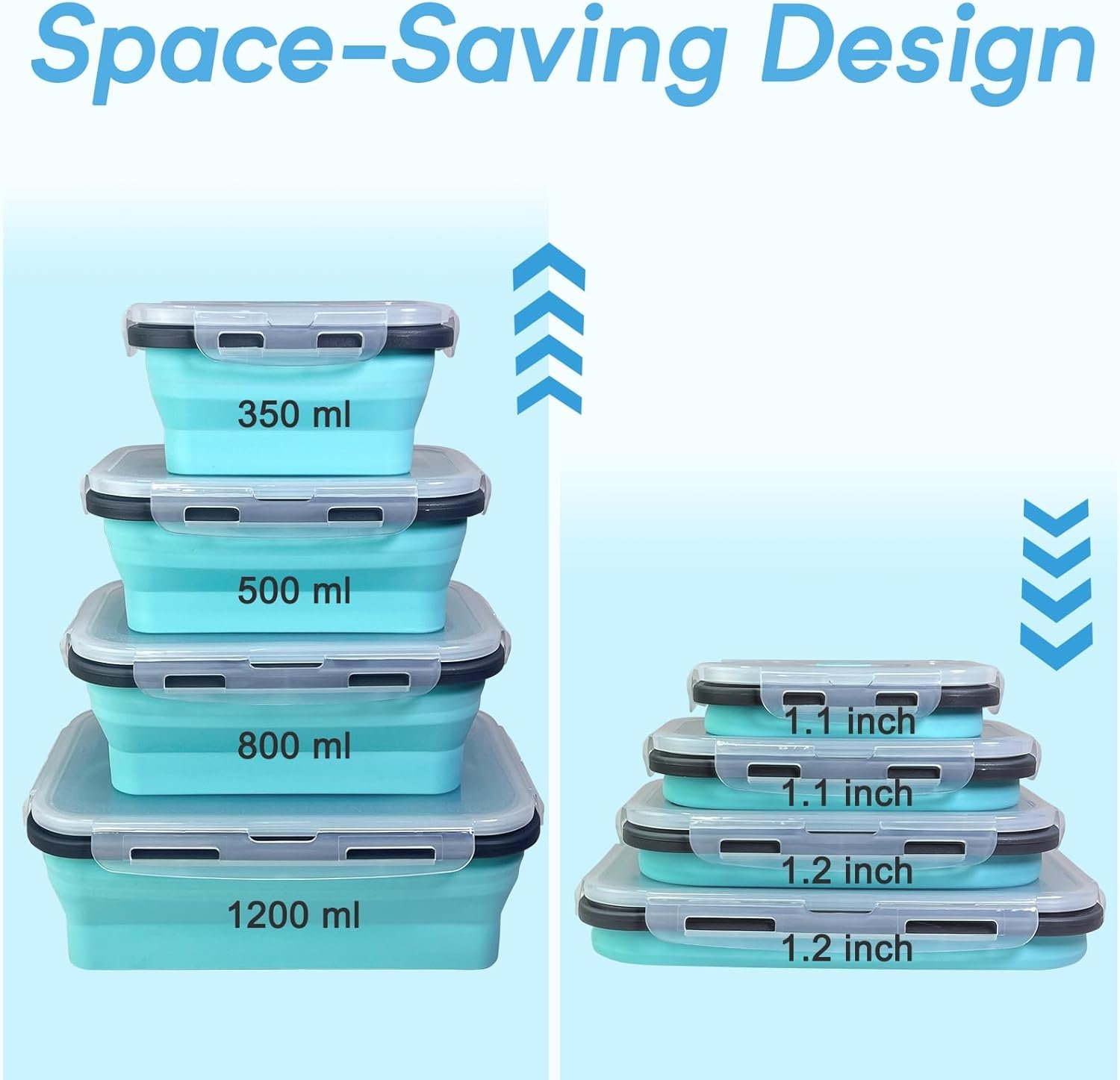 Leakproof, Airtight, and Space-Saving for Daily Usage: These collapsible food storage containers with lids are perfect for daily usage, from storing snacks to prepping meals. Their space-saving design ensures easy packing for travel or lunch packing.