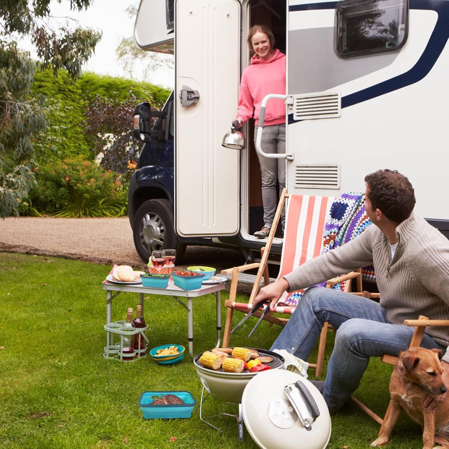 Guyuyii 4 Pack Collapsible Food Storage Containers – Silicone Leakproof Lids, Space-Saving for Home Kitchen Use, RV Accessories, Camping, Travel and Mobility – Microwave, Dishwasher, Freezer Safe