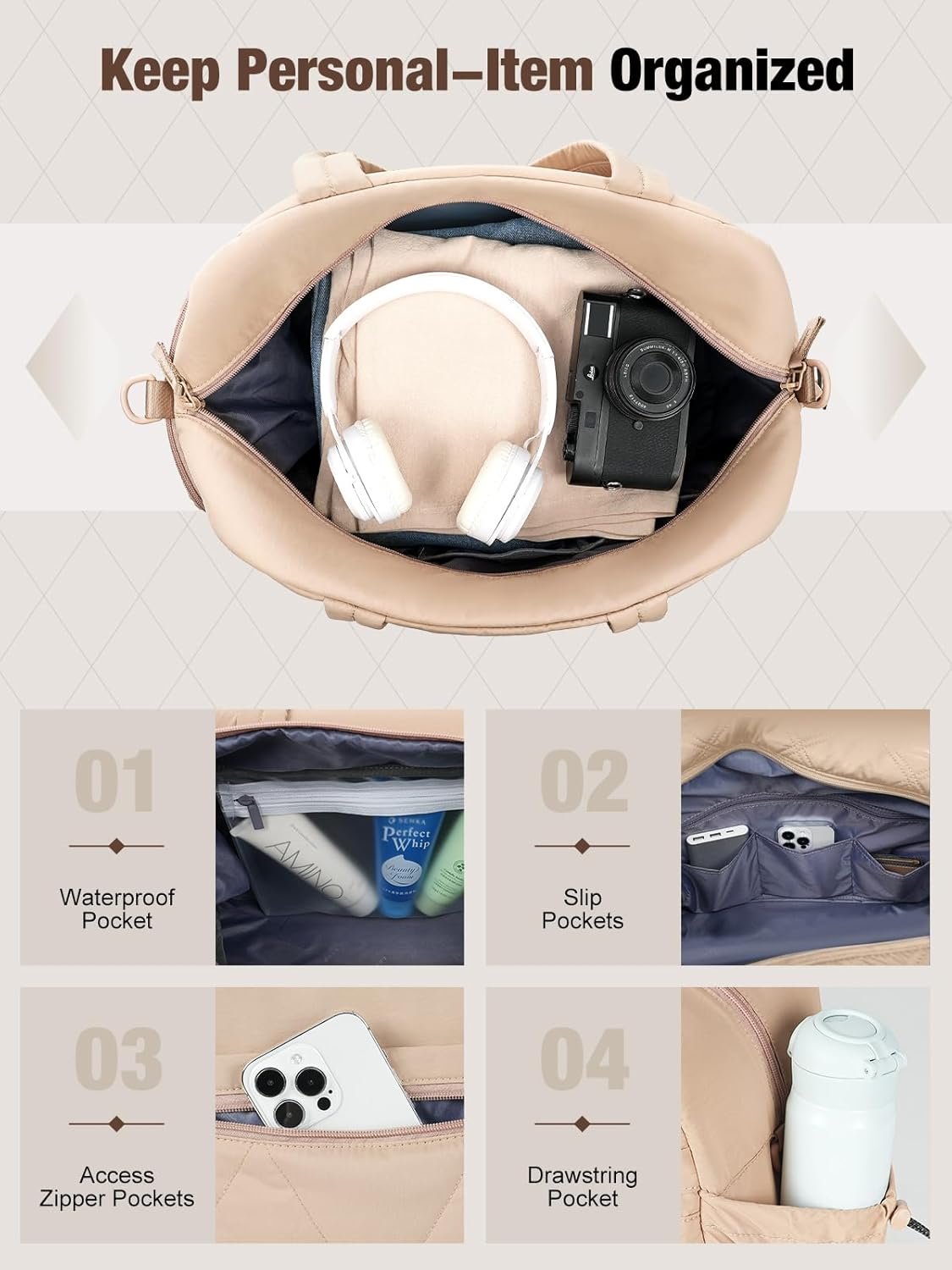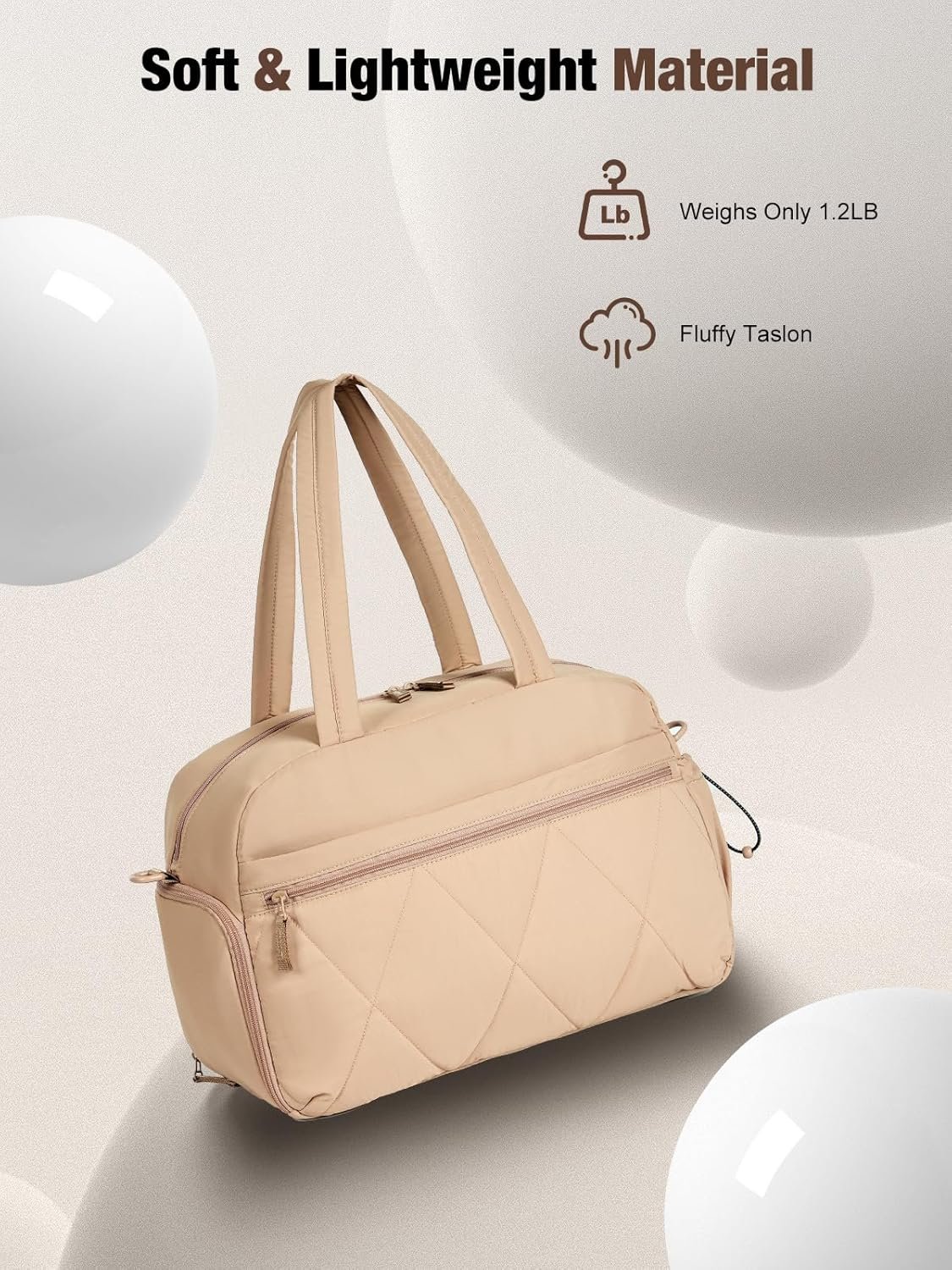 [Premium Lightweight Puffer Material]-Crafted from high-quality puffer taslon material, This travel duffel bag combines a modern aesthetic with practical functionality. Its soft, quilted texture is not only stylish but also lightweight and durable, making it the ideal choice for women who value both elegance and convenience!