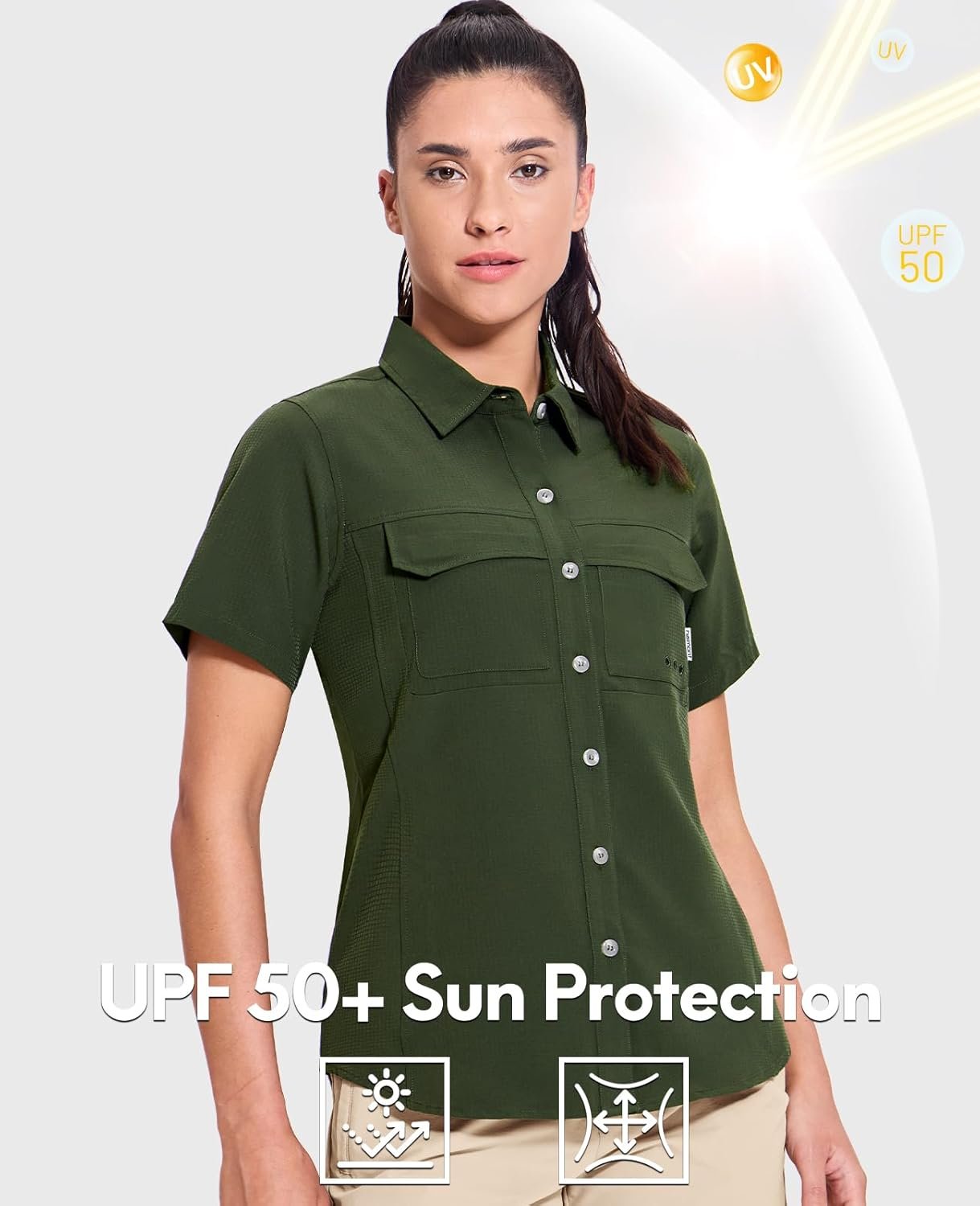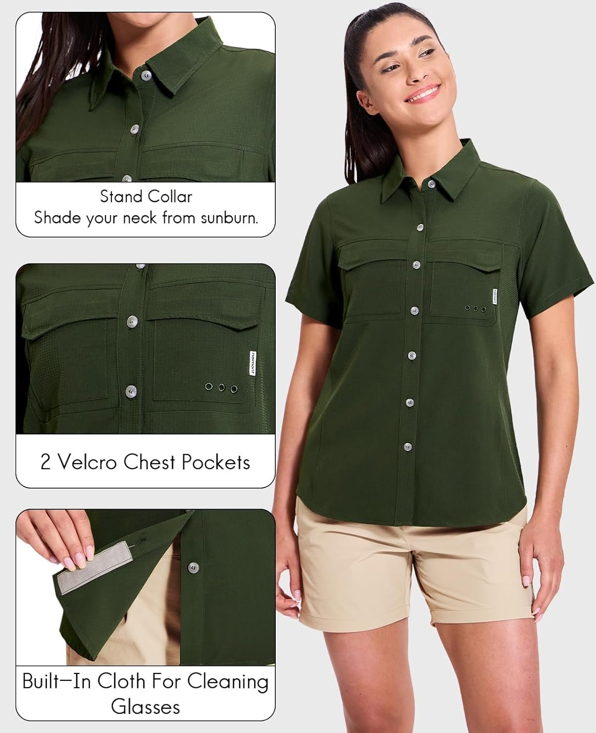 Women’s UPF 50 Long Sleeve UV Sun Protection Safari Shirts Outdoor Quick Dry Fishing Hiking Travel Shirts