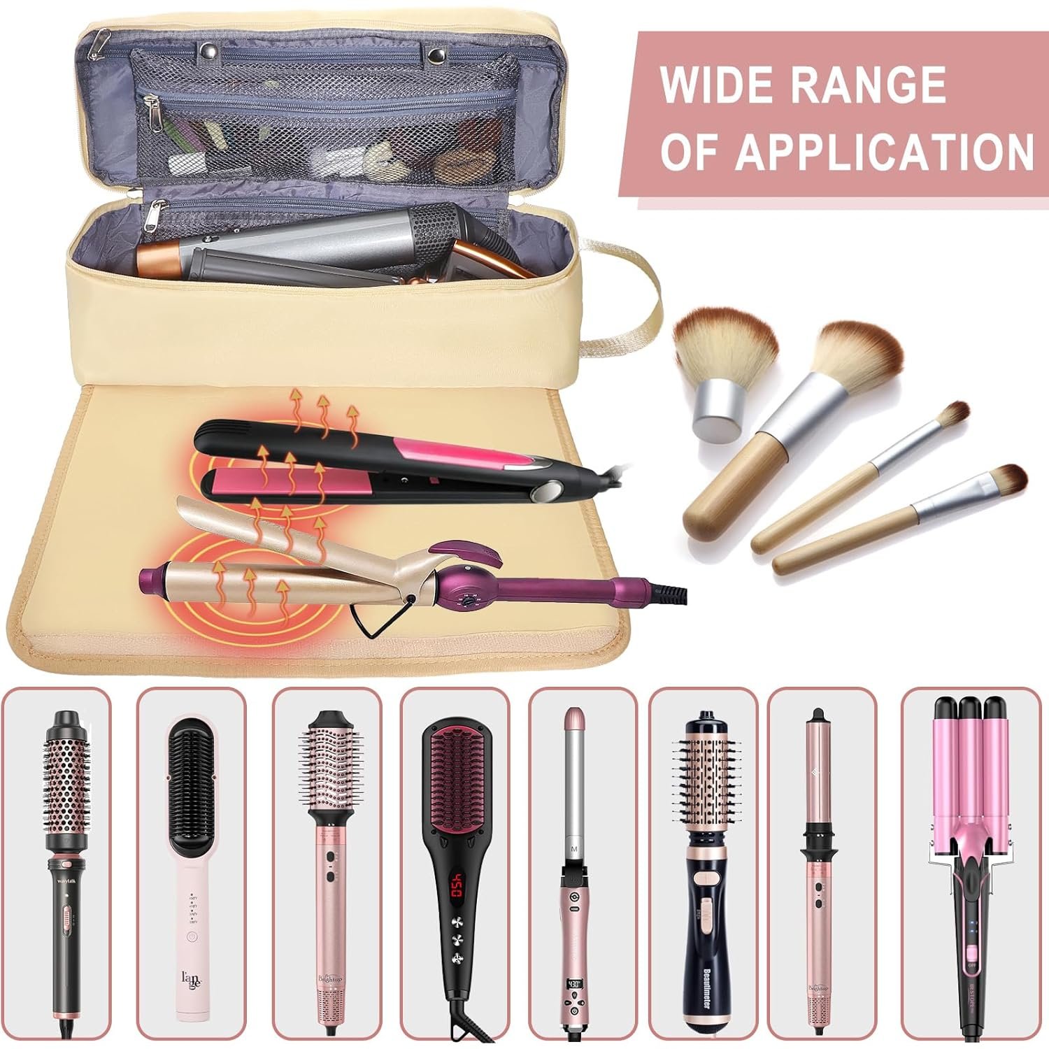 Hair Tools Travel Bag with Heat Resistant Pad, Portable Hair Tools Storage for Hair Straighteners, Curling Iron and Hair Care Accessories, Traveling Essentials for Women