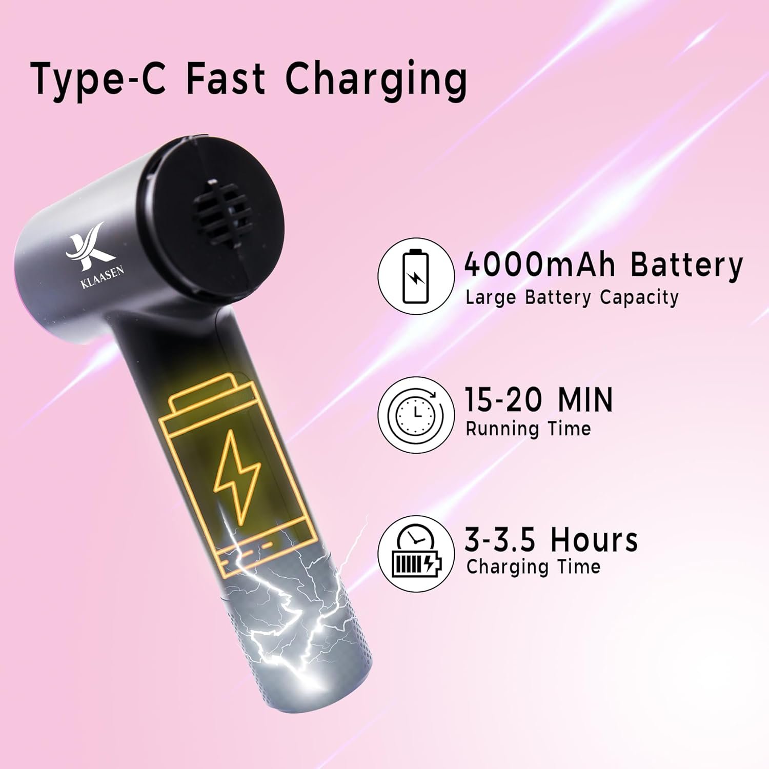Rechargeable Battery & Fast Charging: Built-in 4000mAh battery charges fully in 2.5 hours via car charger, mobile power, or laptop for eco-friendly and efficient cleaning.