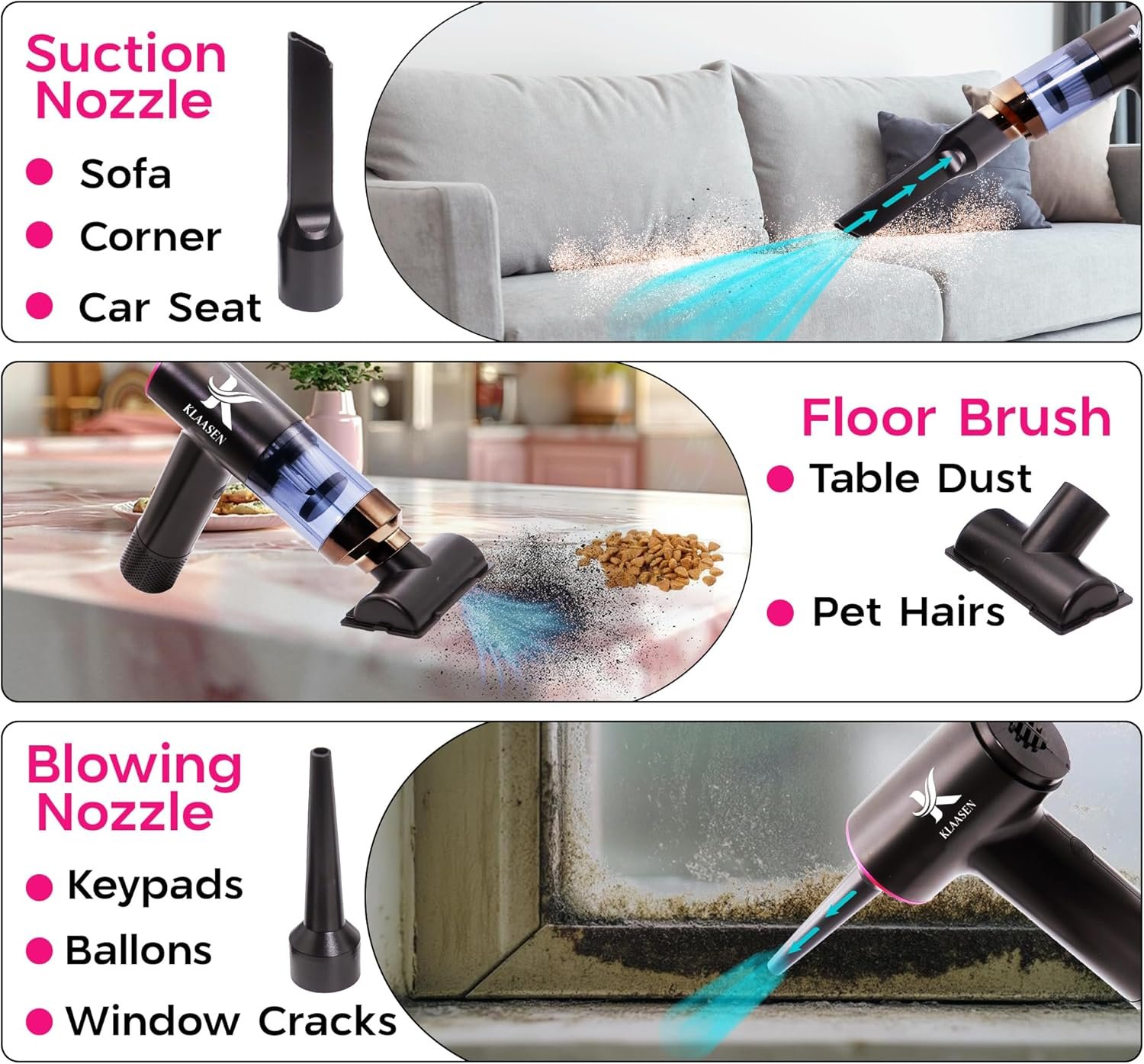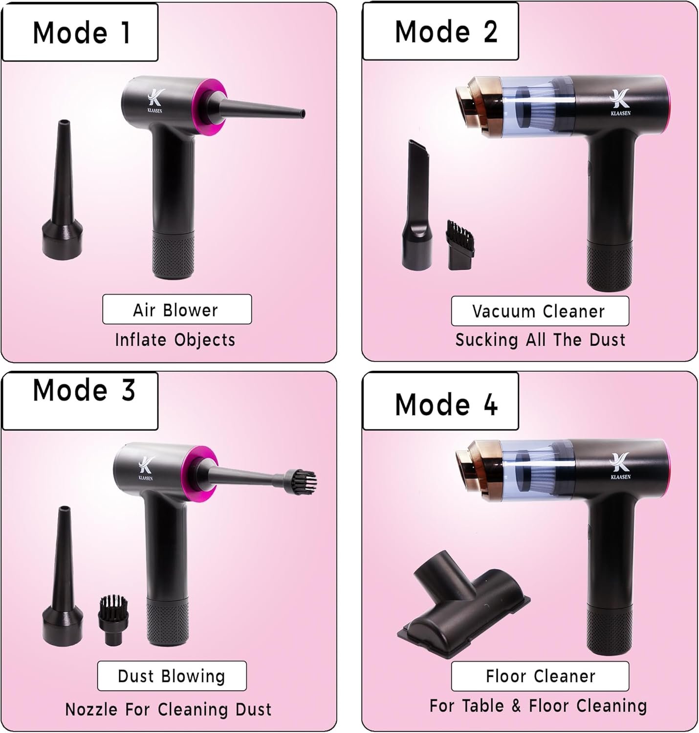 Multiple Accessories: This Car Vacuum Portable Cordless Includes various detachable nozzles for different cleaning tasks, from daily vacuuming to inflating and drying.