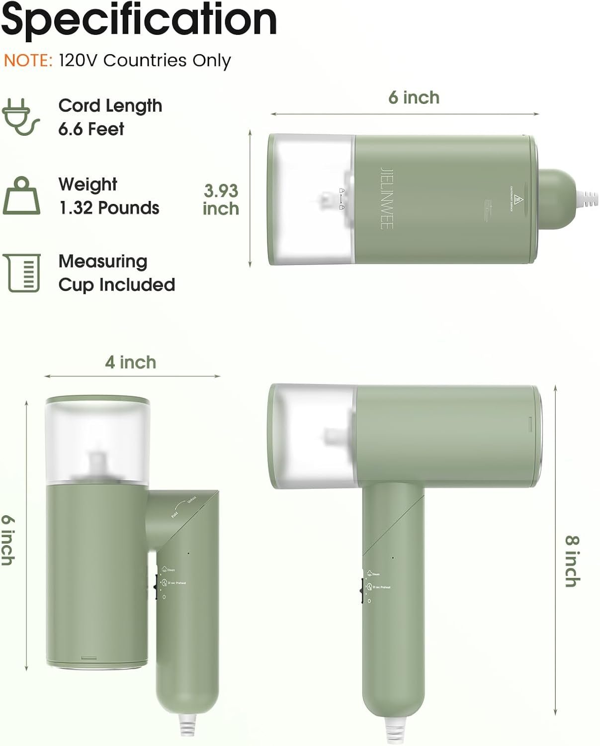 𝗖𝗼𝗺𝗽𝗮𝗰𝘁 & 𝗧𝗿𝗮𝘃𝗲𝗹-𝗙𝗿𝗶𝗲𝗻𝗱𝗹𝘆: The JIELINWEE foldable steamer for clothes travel size weighs only 1.3 lbs, Whether at home or on the go, this portable hand held steamers for clothes fits perfectly in your suitcase or hand luggage (Suitable for use in 110-120V countries only)