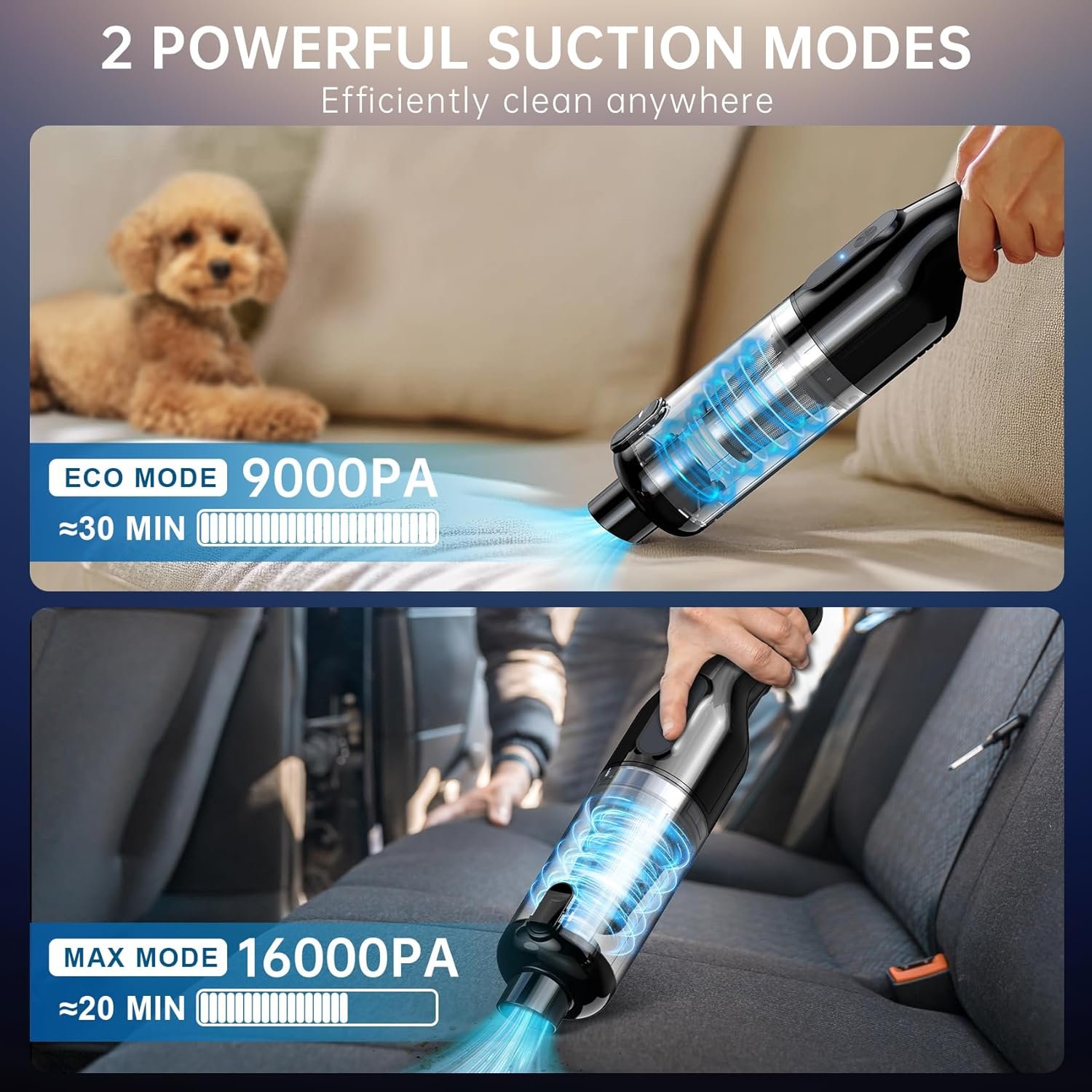 Handheld Vacuum Cordless, Portable Car Vacuum with 16000Pa Powerful Suction, Ultra-Lightweight 1.3lbs, Brushless Motor, Multiple Accessories for Home Office Car Pets Cleaning