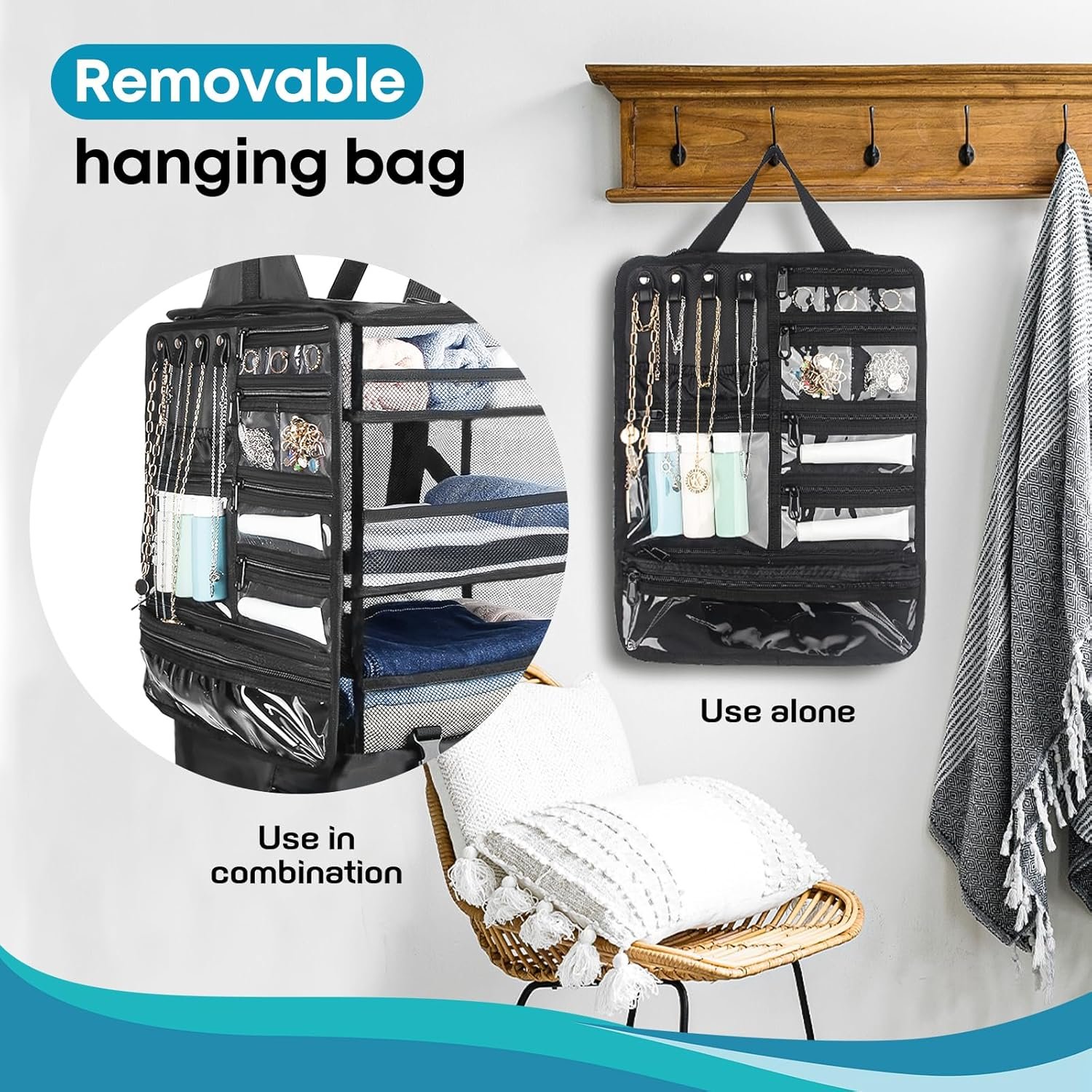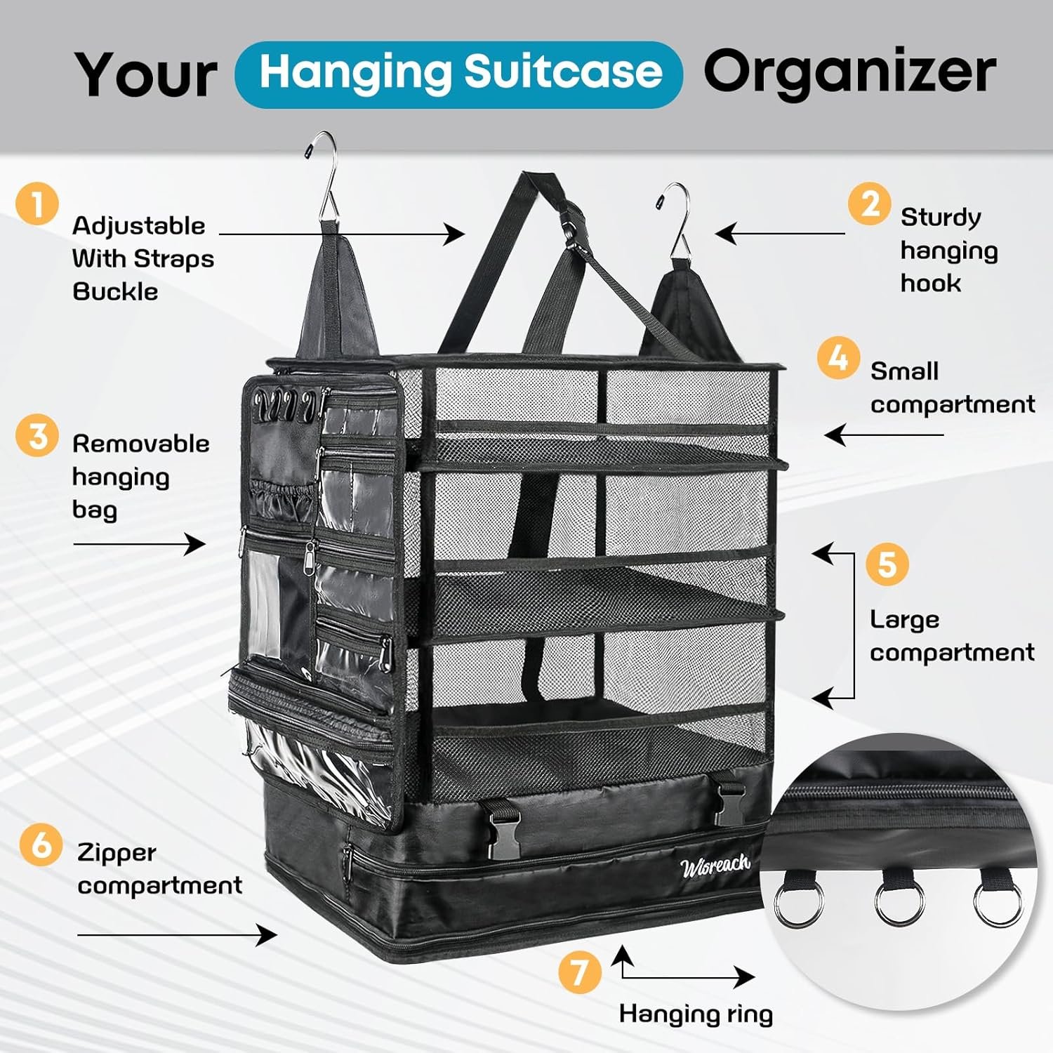 Spacious Design:Wisreach Hanging Suitcase Organizer features a detachable jewelry and toiletry bag, providing an efficient solution for packing all your travel essentials
