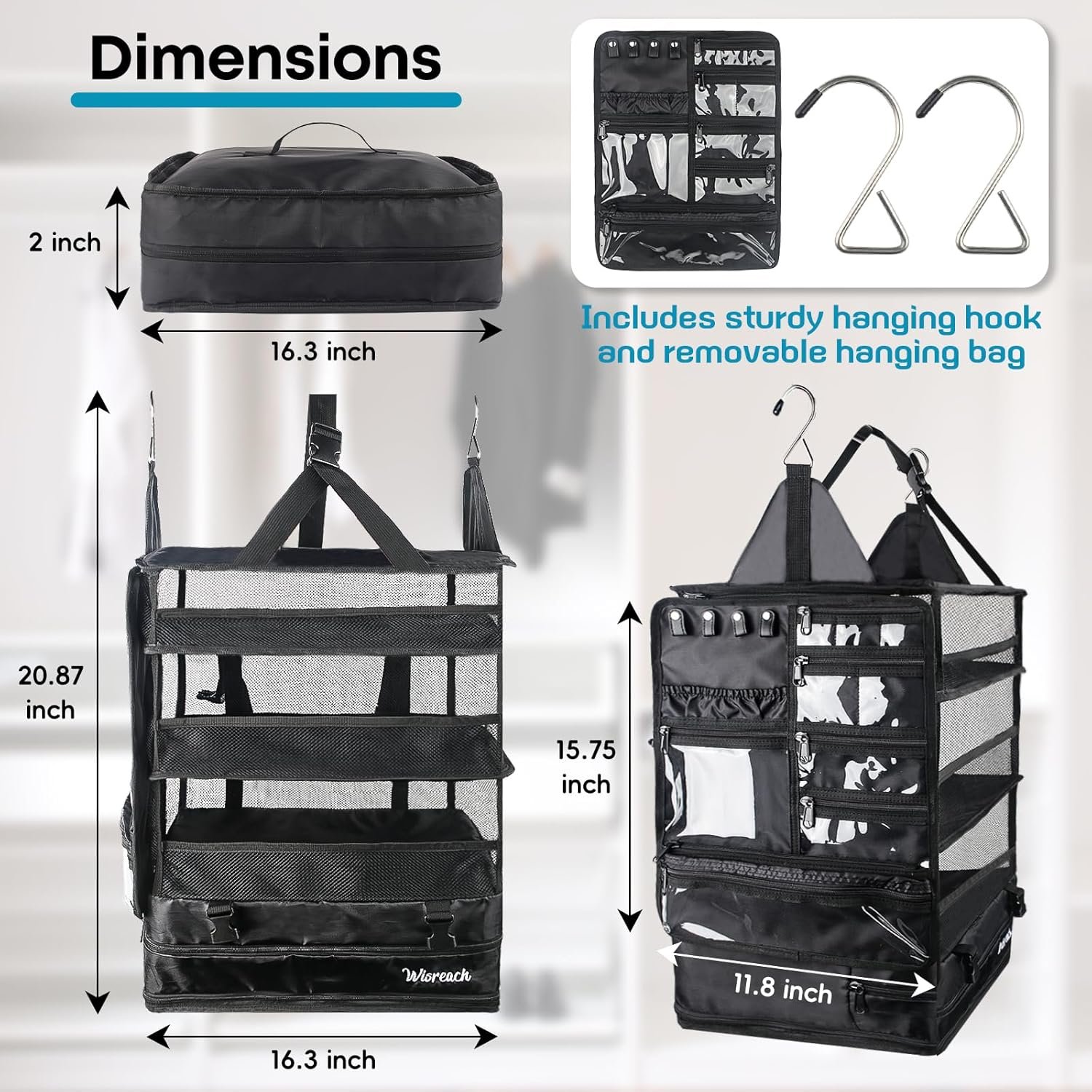 Space-Saving Solution: Maximize your luggage organization with our hanging suitcase organizer, which expands to 15 x 12 x 19 in, offering ample storage space for all your needs