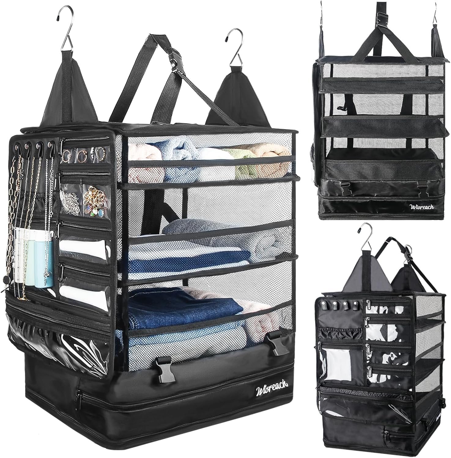 Compact and Accessible: This hanging luggage organizer keeps your belongings tidy and easy to reach, ensuring everything you need is organized and within arm’s reach