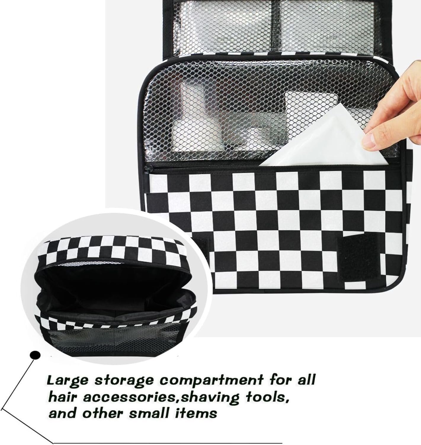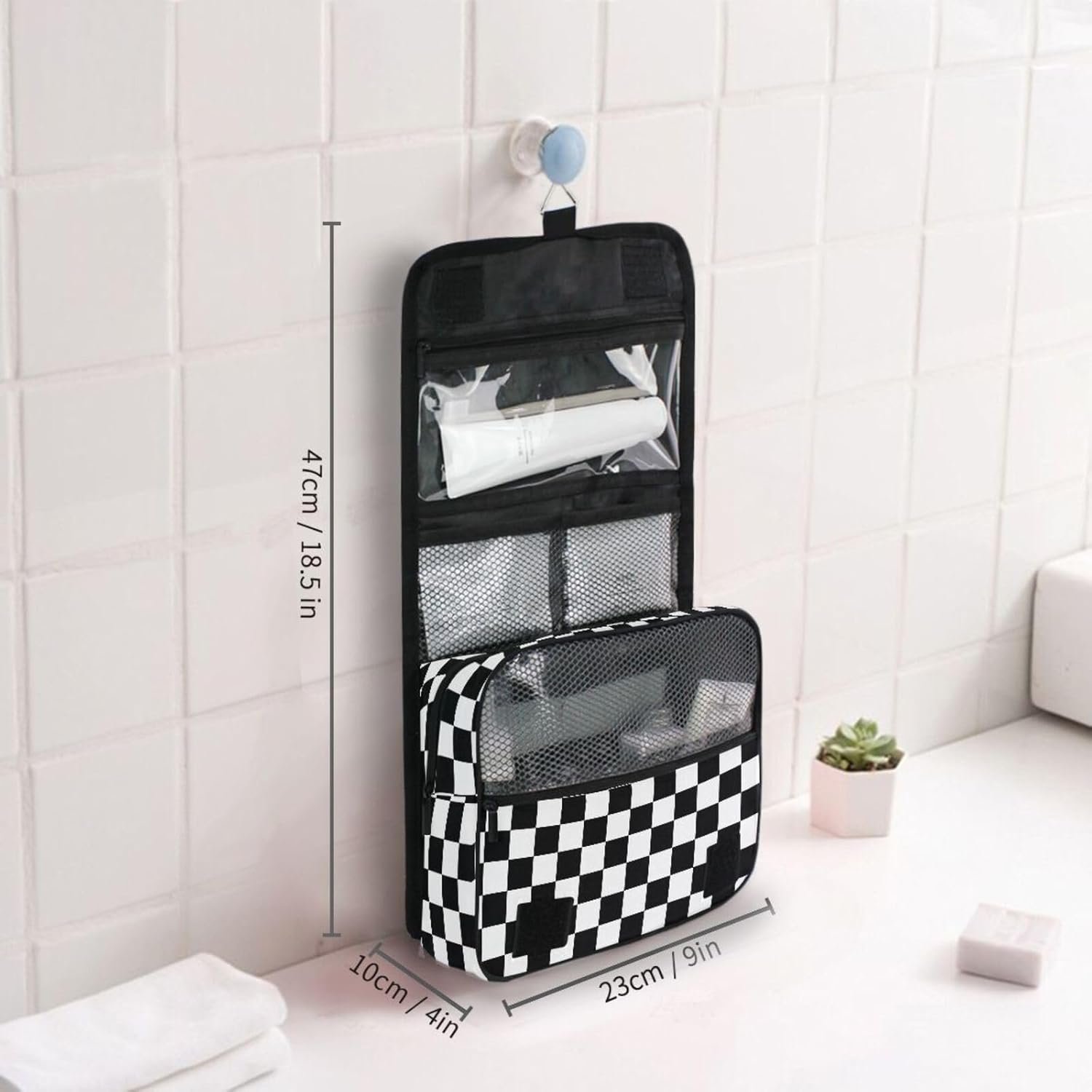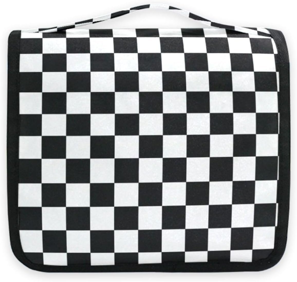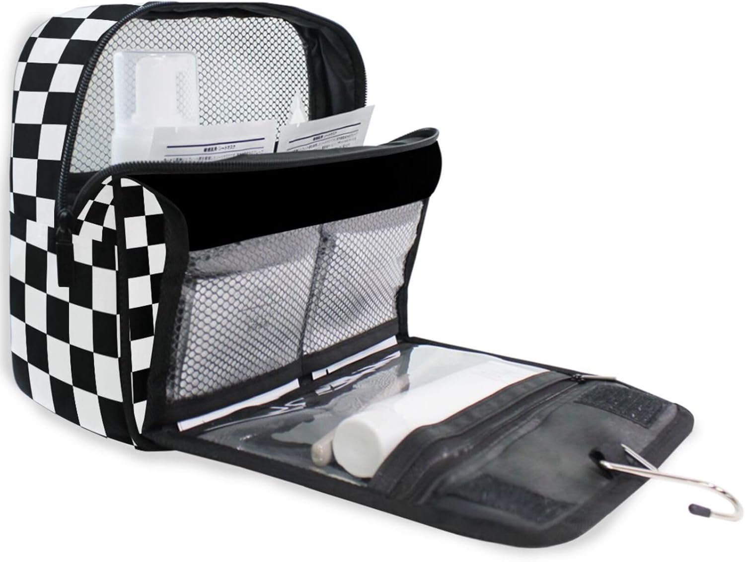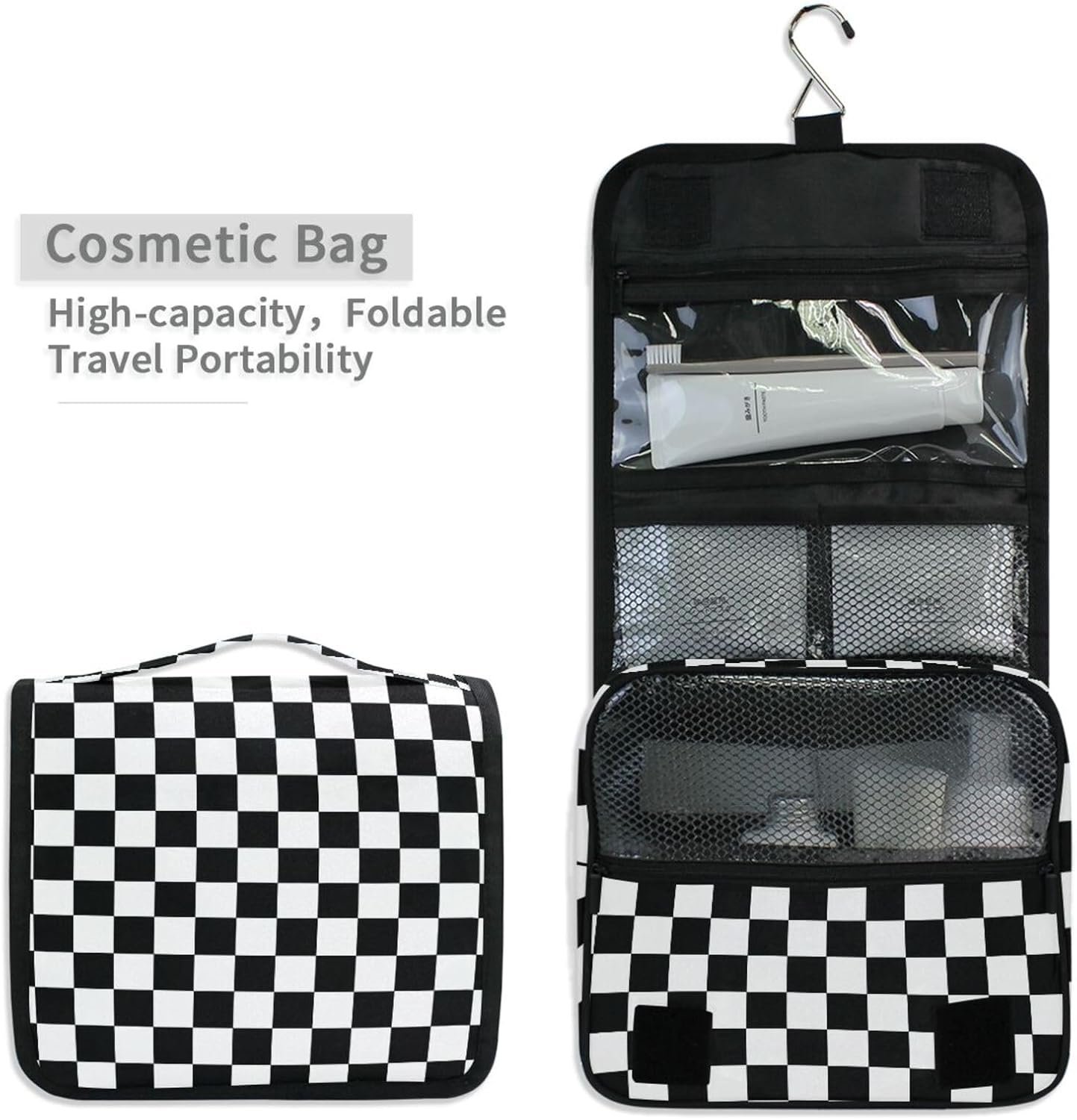 Hanging Toiletry Bag Black and White Checkered Travel Makeup bag for Toiletries Portable Travel Toiletry Organizer Cosmetic Bags with Hanging Hook