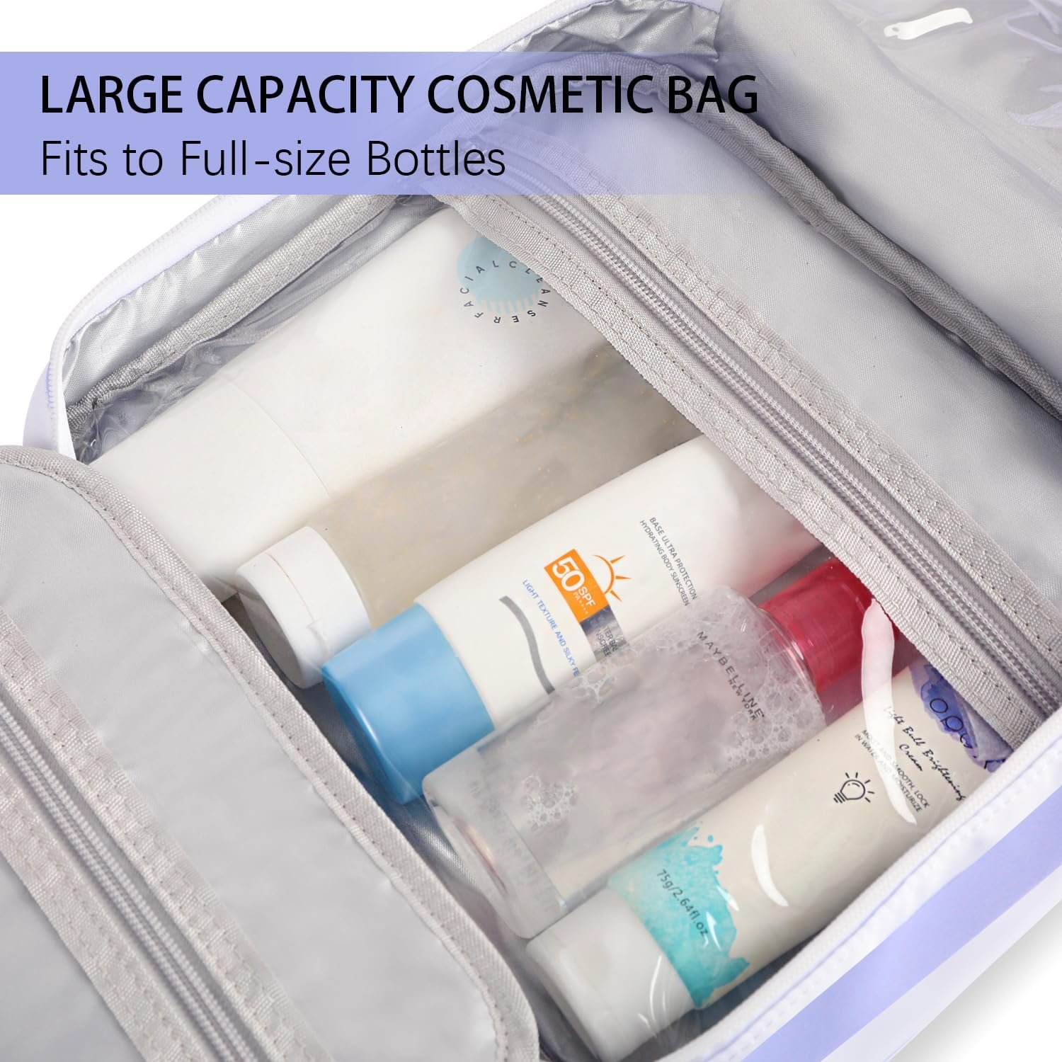 Large Capacity Toiletry Bag for Travel Must Haves – Portable design with 2 large waterproof PVC compartments and 2 flat compartments, easy to organize your jewelry, lipsticks, foundations, makeup brushes, skincare products and so on, easy to load up what you need for your travel.