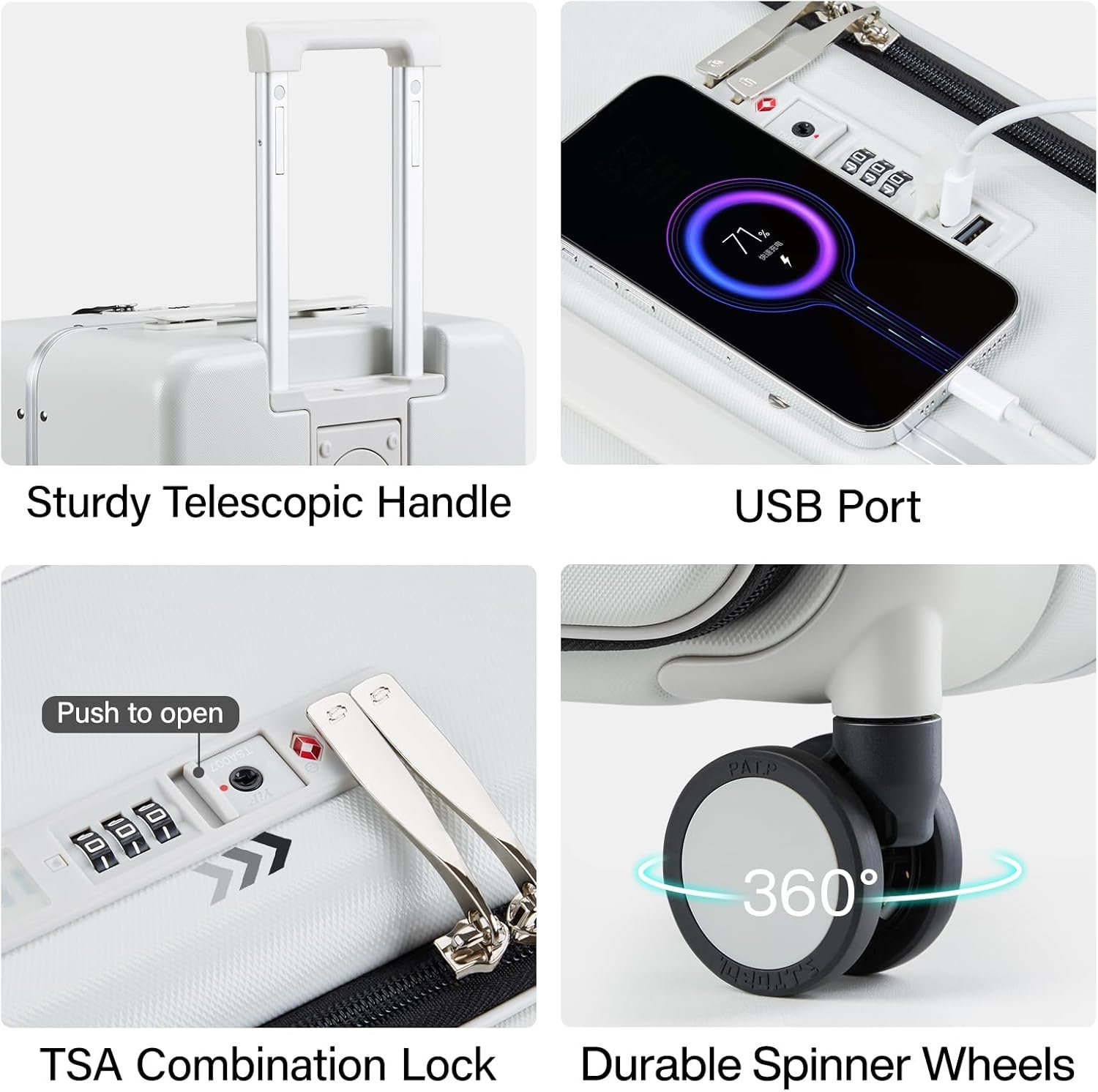 【Quick-Access USB Port】This suitcase built in USB charger outside and built in charging cable inside, Hanke travel luggage provide you with a more convenient way to charge your electronic devices on the trip.