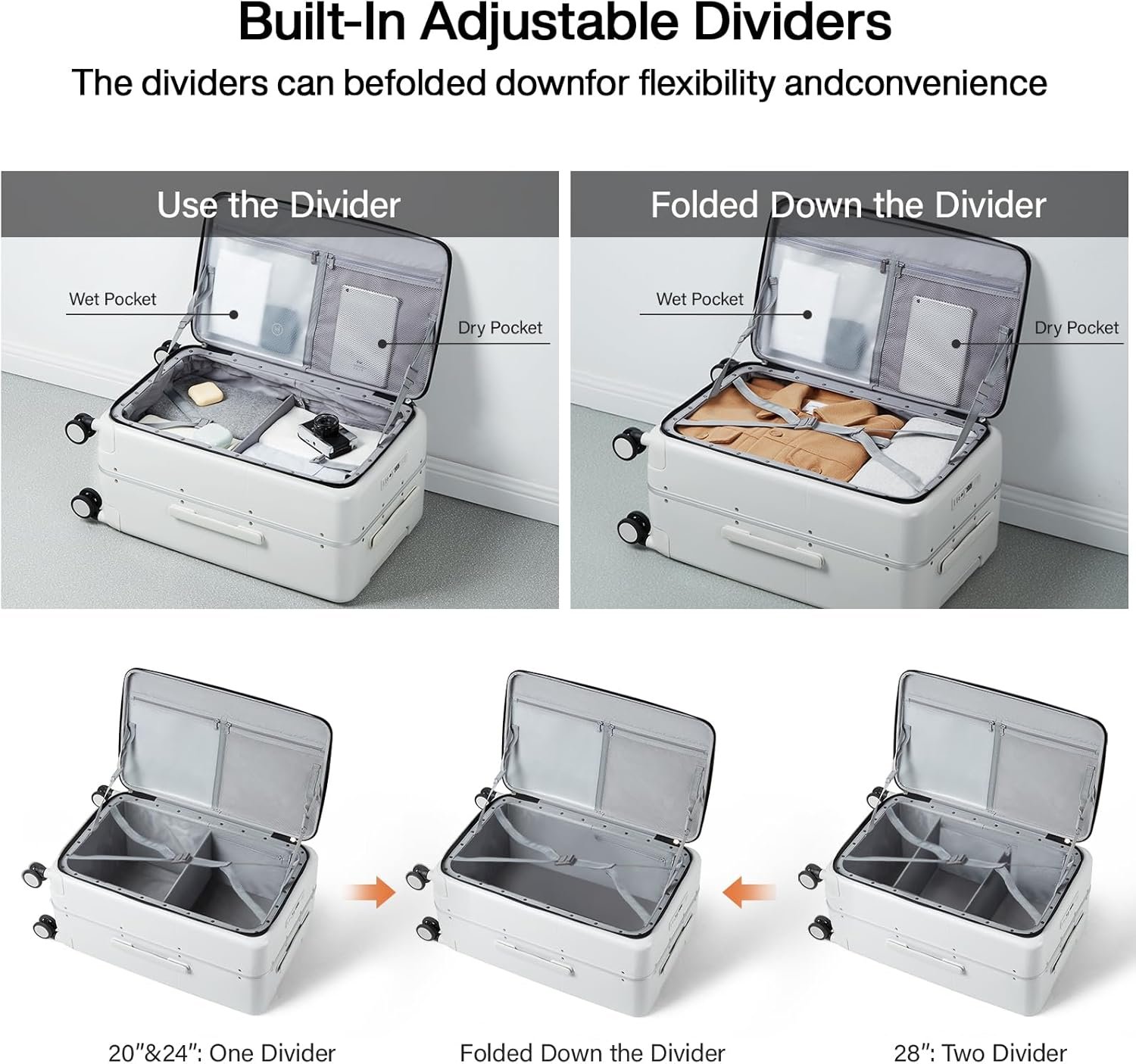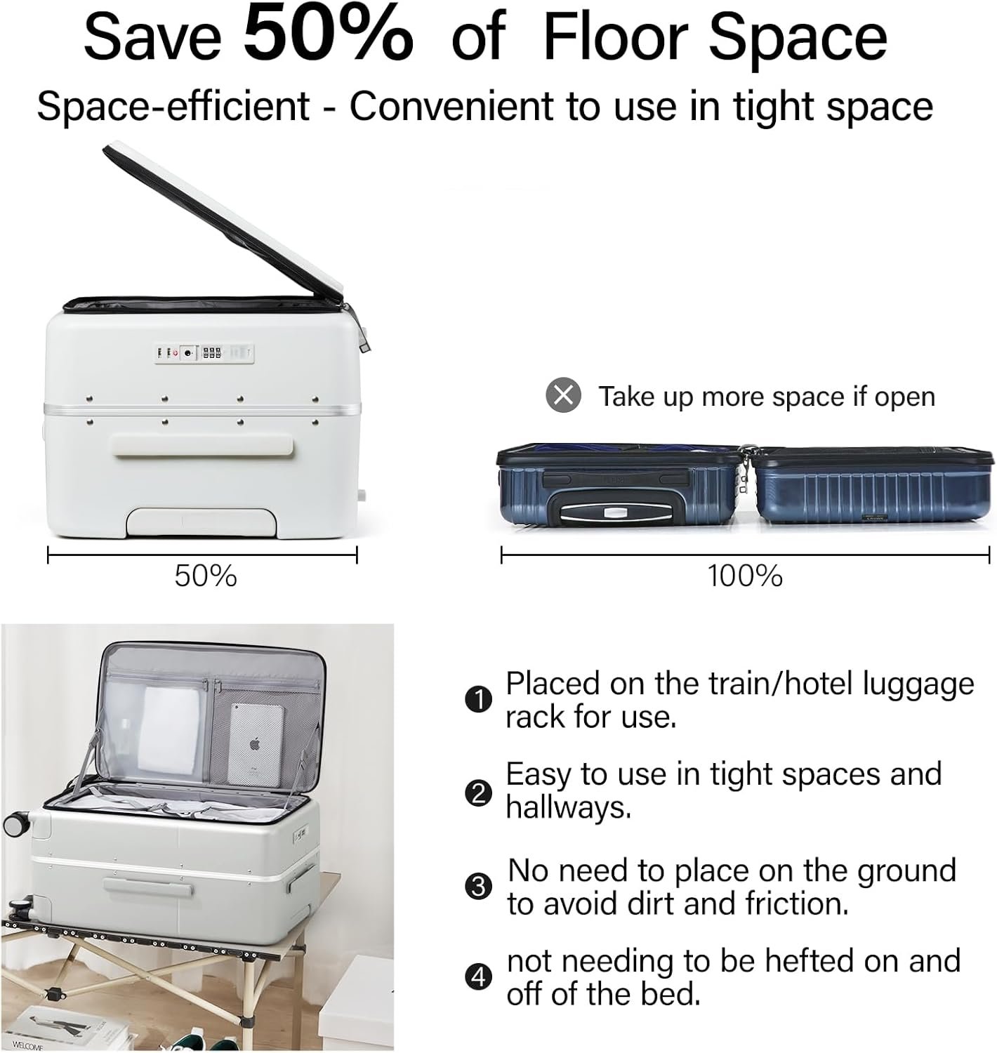 【Save Space & Effort】The top opening is a real space-saver in a tight space, compared to a luggage that zips open in the middle and has to spread out.And the top open luggage can be opened easily with one hand, is user friendly for elder, children and someone with less effort.strength.