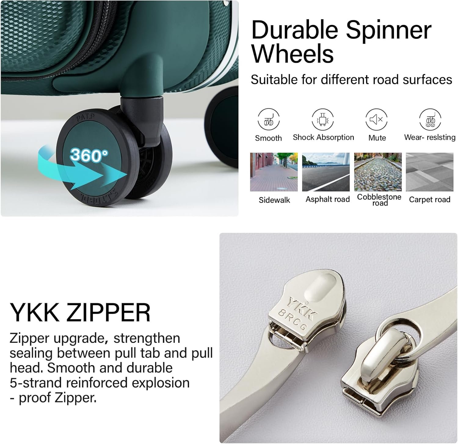 【BETTER MATERIAL】This travel trunk with wheels made of premium polycarbonate PC material that is more durable than ABS+PC, with diamond-shaped texture on the surface to prevent against scratches, so that the suitcases can remain beautiful after a long trip.