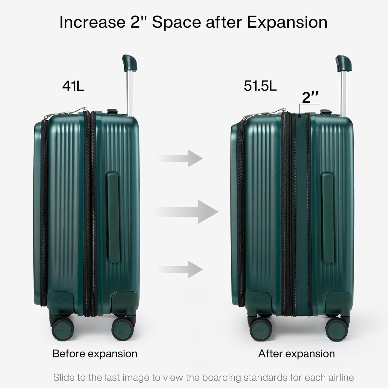 Hanke Grace Expandable Suitcases with Wheels Hardshell Carry On Luggage Airline Approved, 20 Inch Travel Suitcase Lightweight Travel Luggage for Short Business Trips, Blackish Green.