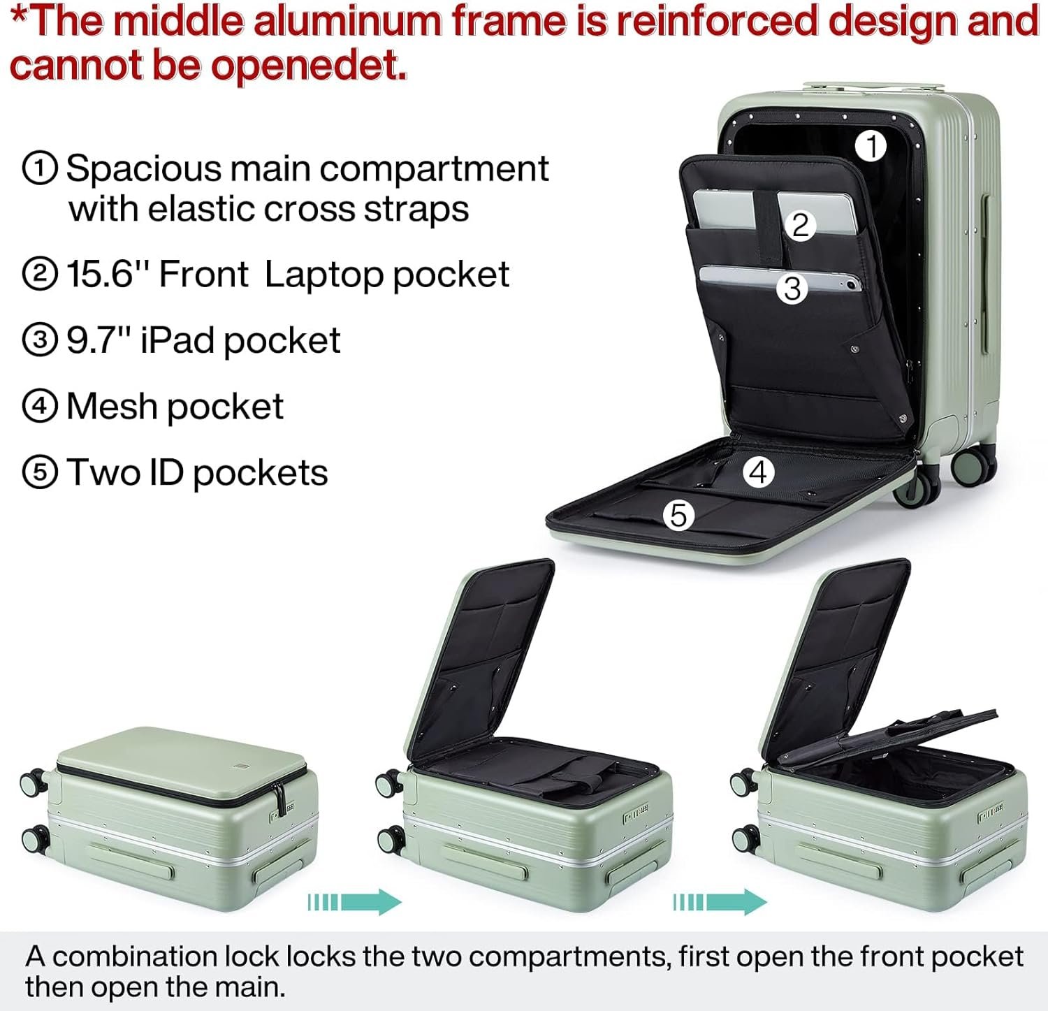 【Elegant Short Travel】A multi in one hardshell luggage designed specifically for short business trips, front opening can quick access to laptop, easy to pass airport security checks. Shoulders no longer need to carry heavy backpacks, made your flights so much easier.(Not clamshell opening method,the middle aluminum frame cannot be opened.)