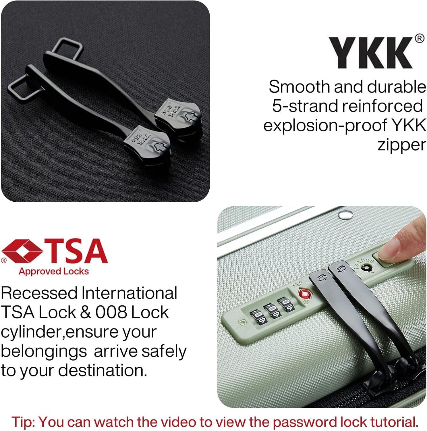 【Selected accessories】 The hardside carry on luggage with PC material with texture, tough and impact resistant, scratch resistant;Travel luggage with smooth and durable explosion-proof zipper, can safely hold more items; Telescopic handle with multi-steps adjustment.
