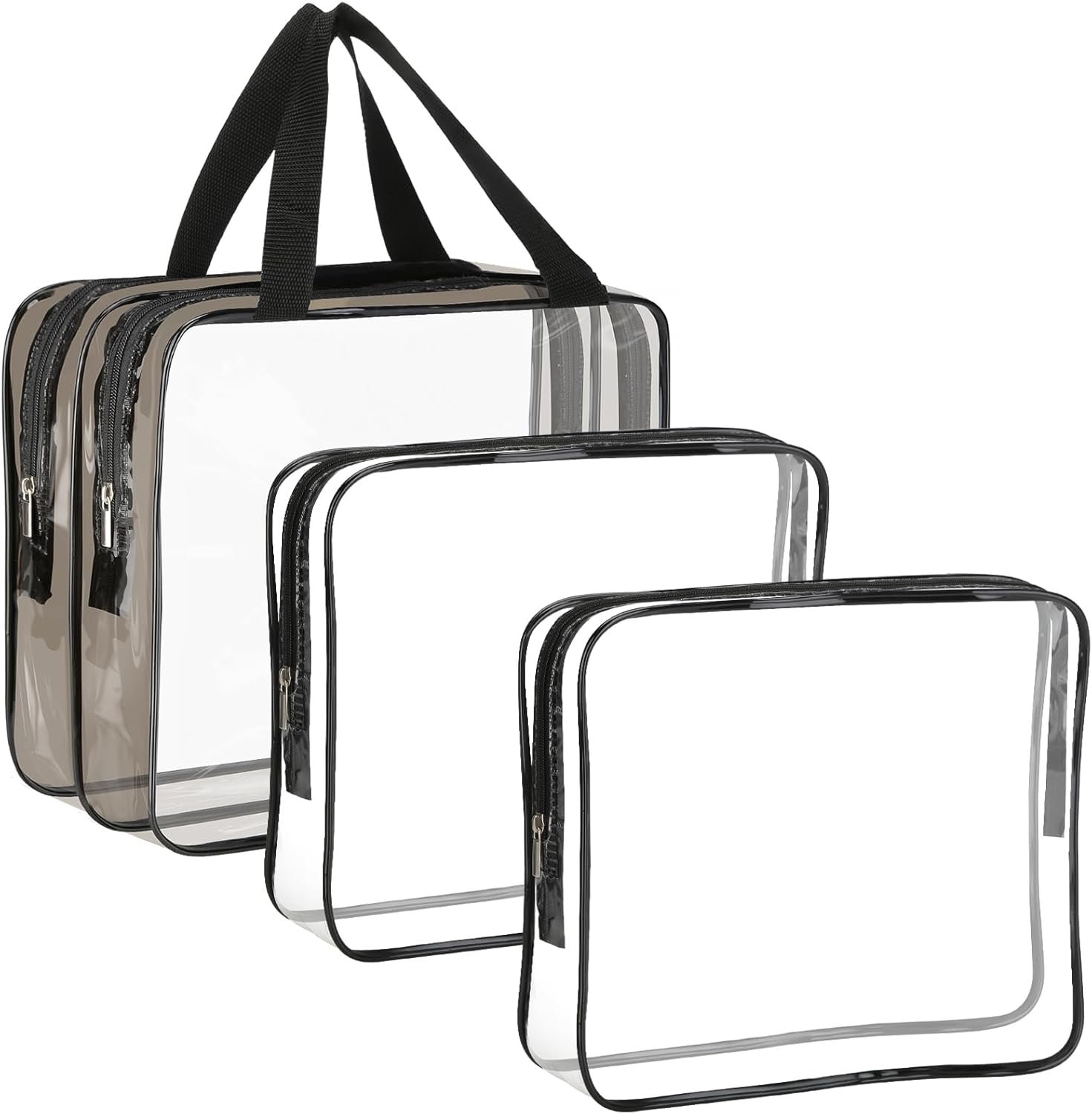 HAOGUAGUA 3 Pieces Clear Makeup Cosmetic Bags, TSA Approved Toiletry Bags Set for Travel, Waterproof Clear PVC Organizer with Zipper Handle, Portable Travel Luggage Pouch (Black)