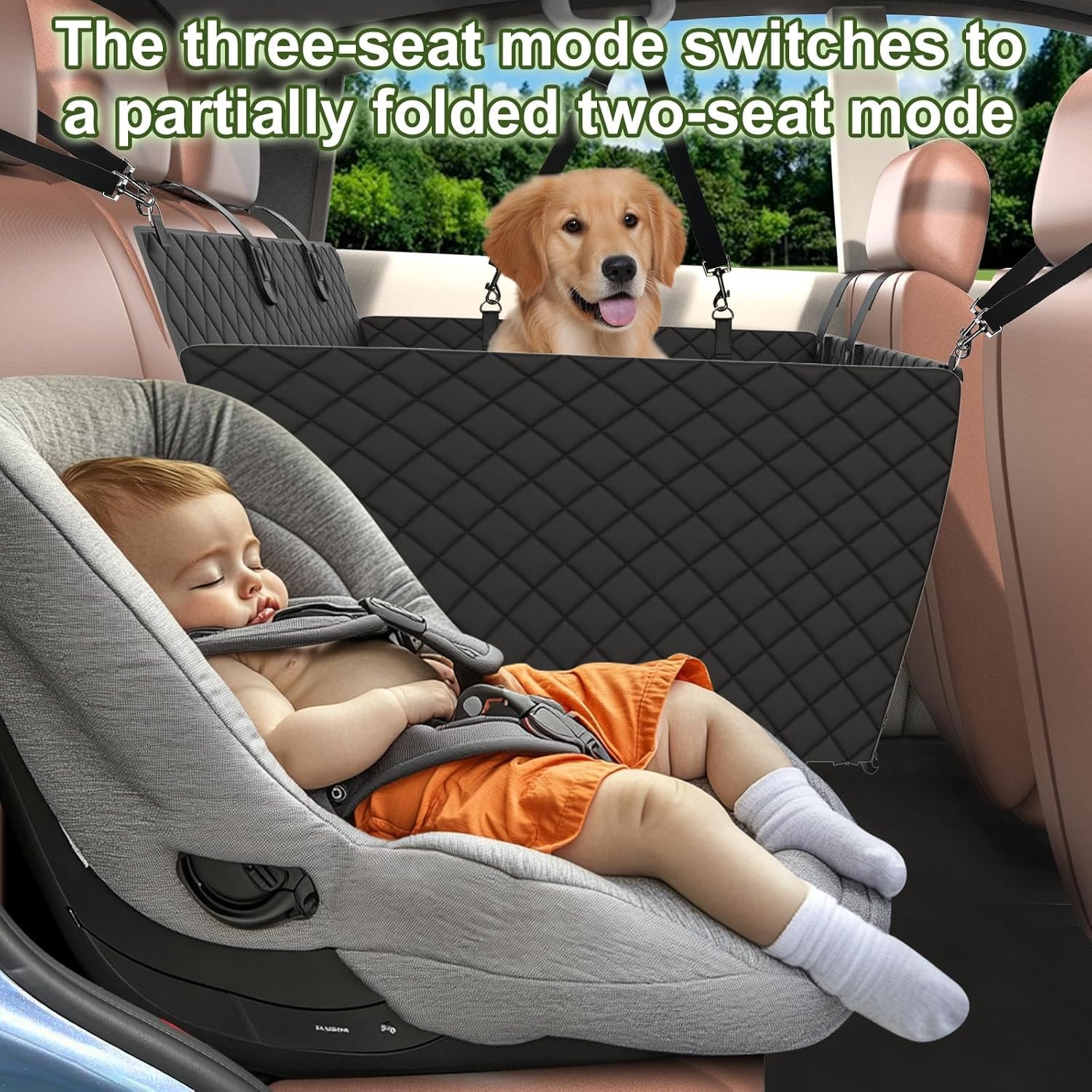 【50-Second Setup & Foldable Seat Mode】Installs effortlessly with adjustable straps—No tools required! lets you convert between 2-seat and 3-seat configurations, perfect for road trips with kids or extra passengers.