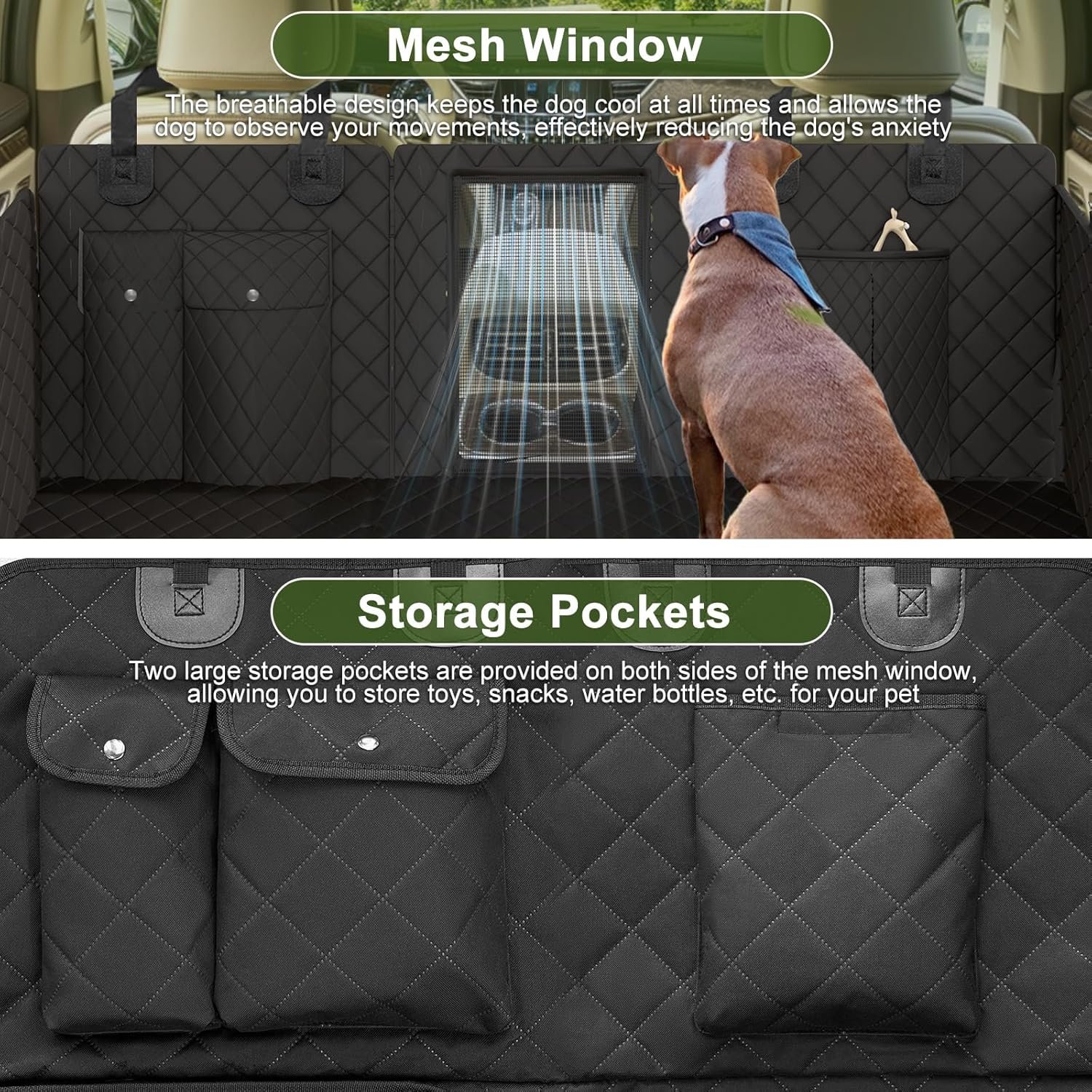 Hard Bottom Dog Car Seat Cover, 400lbs Capacity Back Seat Extender for Dogs – Waterproof, Anti-Scratch Car Pet Hammock with Mesh Window & Storage Pockets, Fits Cars, SUVs, Trucks, Large