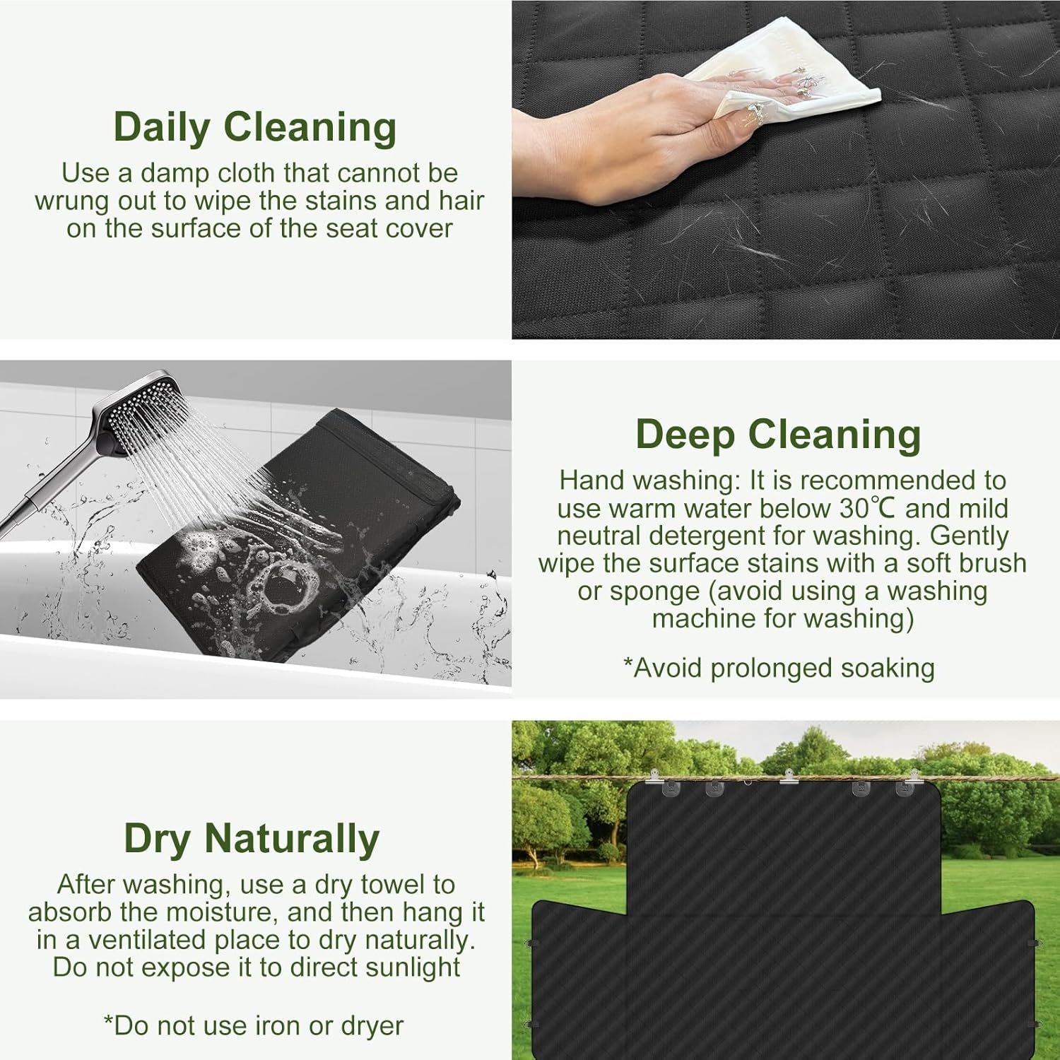 4. Please avoid scratching the car seat cover’s surface hard to prevent damage to the coating.