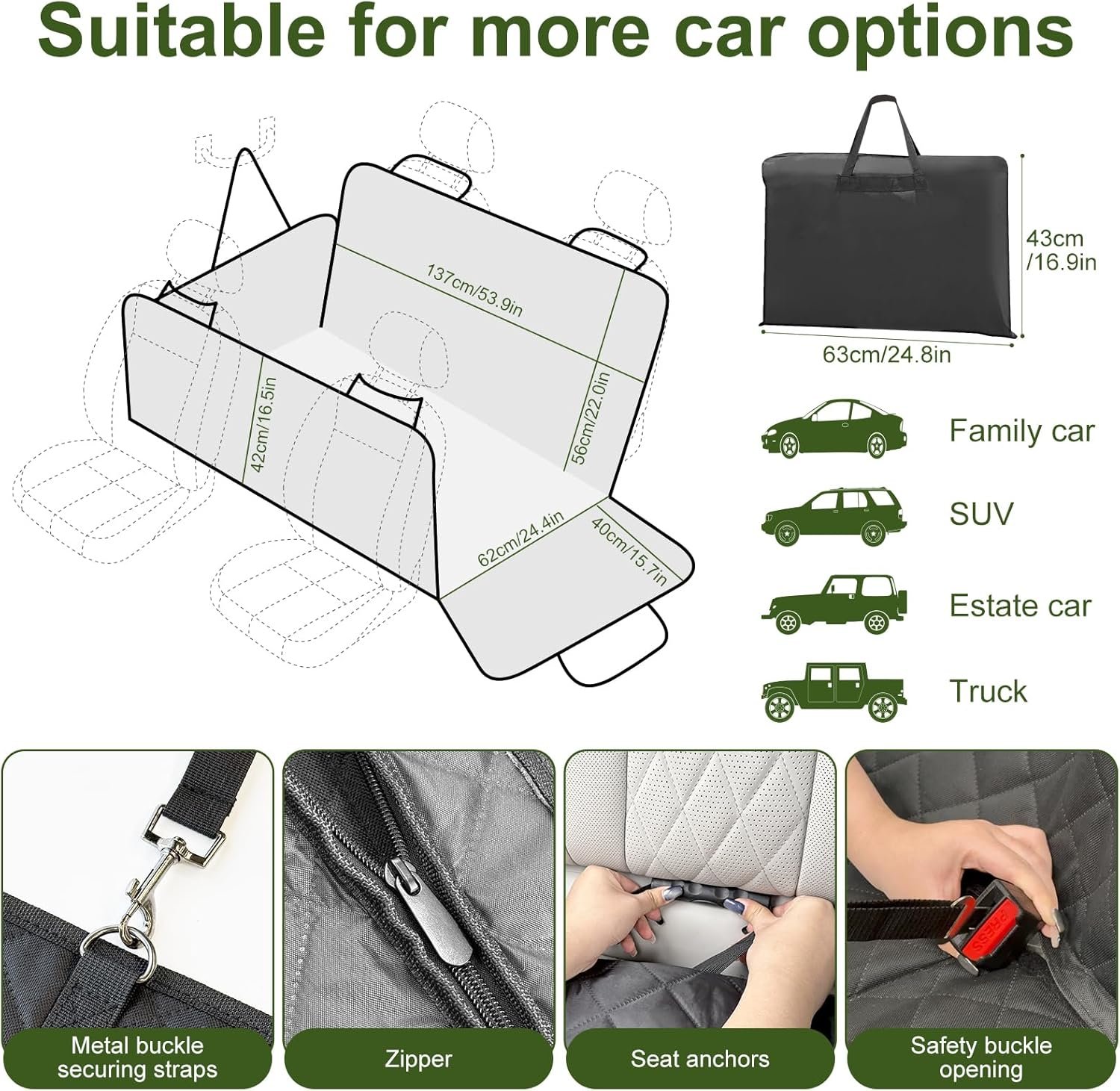 【Waterproof & Scratch-Proof】Dual-layer waterproofing (600D Oxford + TPU coating) blocks mud, spills, and accidents. Tested to withstand multiple scratches, it protects leather or fabric seats while staying easy to clean—Just wipe with a damp cloth.