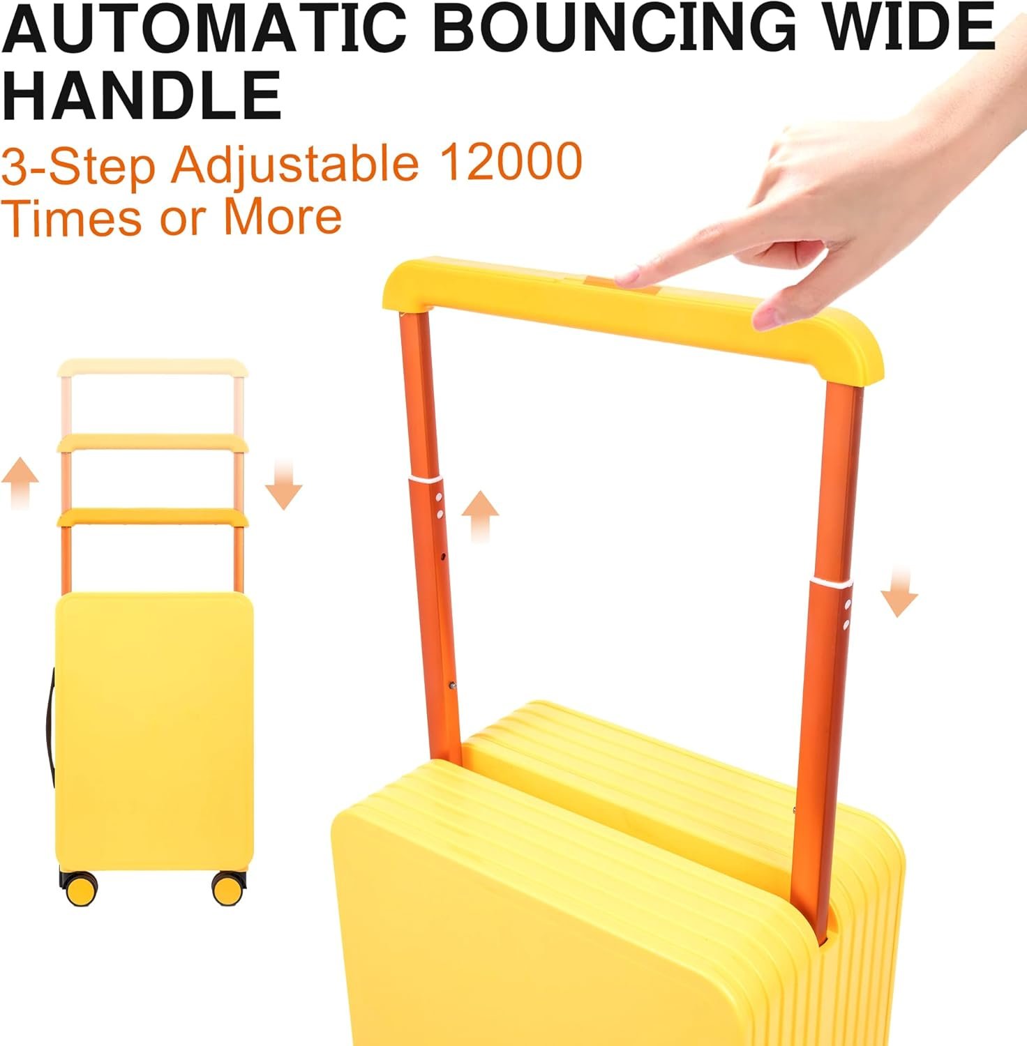 WIDE HANDLE SUITCASE:Wide balance telescopic handle is installed at the edge of the luggage compartment, which does not occupy any space for use. Storage space utilization rate up to 98%