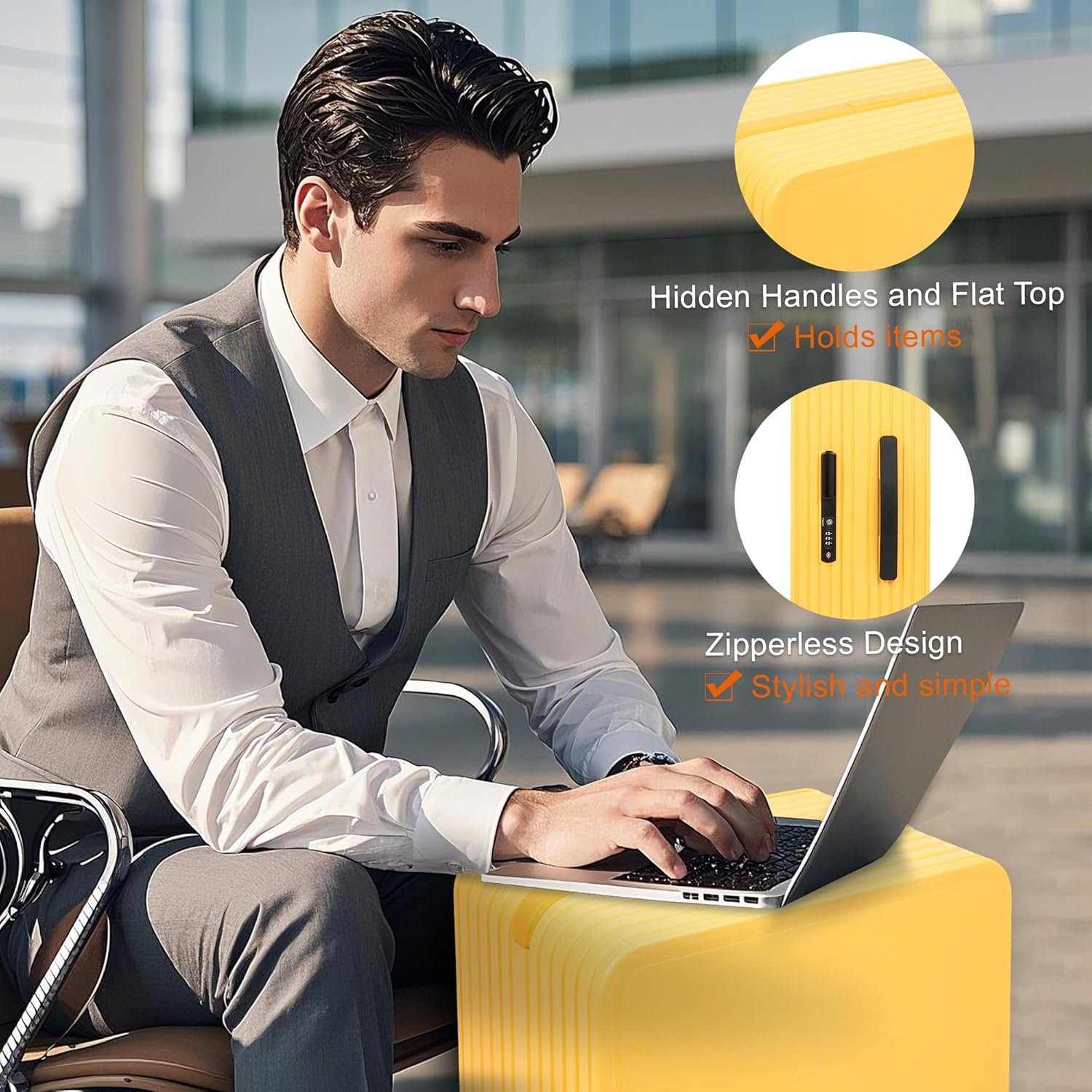 ZIPERLESS DESIGN: Elevate your travel style with this sleek, zipperless suitcase, combining cutting-edge security, modern design, and lightweight durability for a seamless journey