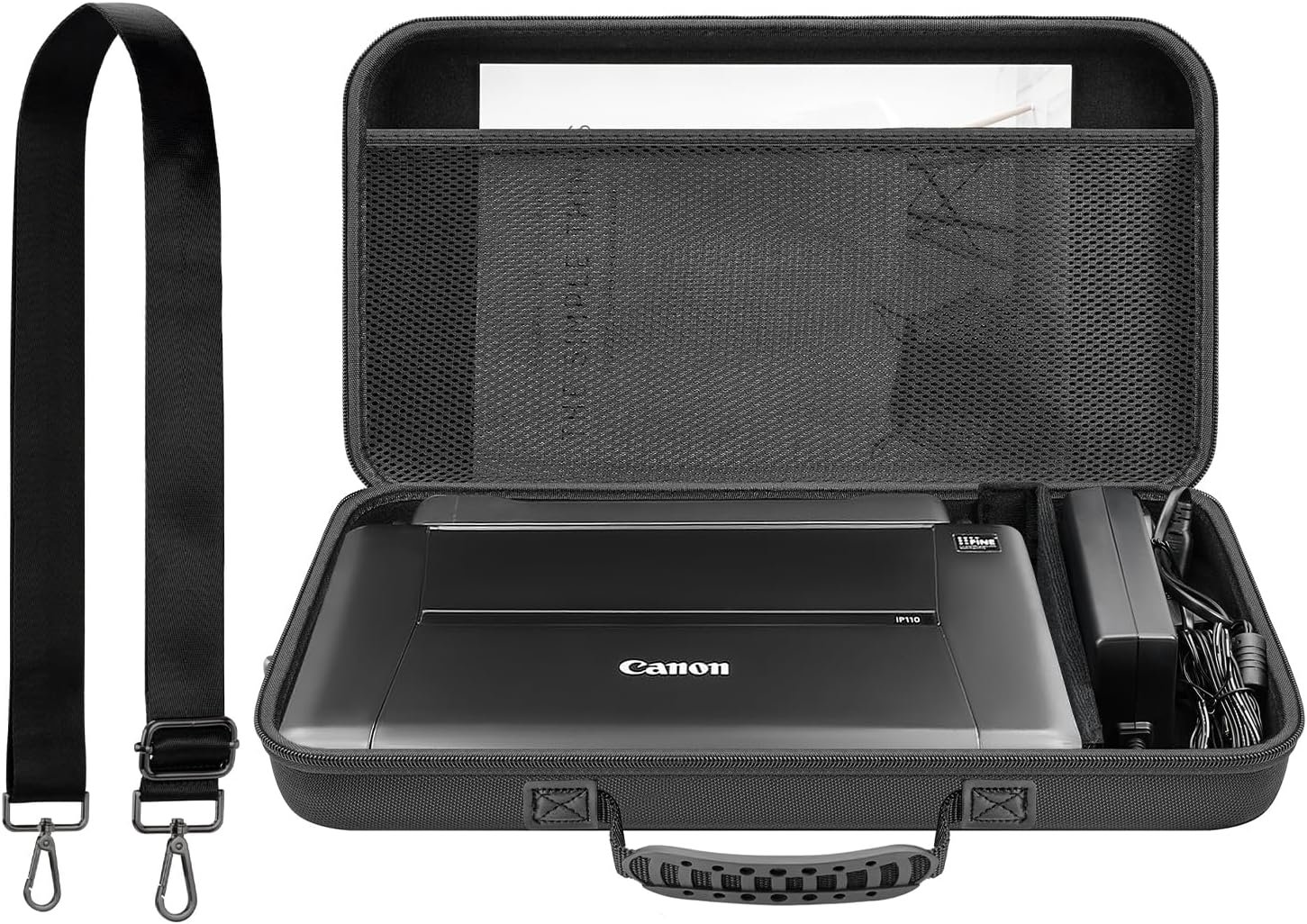Hard Travel Case for Canon PIXMA TR150/ TR160/ iP110 Wireless Portable Printer and Battery Pack, Printer Organizer with Adjustable Shoulder Strap, Mesh Pocket fit Ink Tank, Adapter (CASE ONLY)